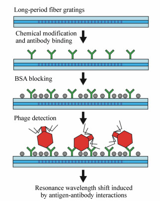 Long period fiber grating is a kind of passive optical device which is sensitive to the surrounding environment. Owing to without retroreflection, high sensitivity to refractive index, miniature size, easy integration, immunity to electromagnetic interference, non-corrosiveness, without the need of reference electrode, long period fiber grating based optical sensors have attracted much attention in the field of refractive index sensing. Since Bentley research group first used long period fiber gratings to detect antigens in 2000, long-period gratings have made great progress in the detection of biological substances in recent years and have been utilized for the detection of many biological substances such as antigen-antibody, bacterial viruses, proteins, DNA, enzymes, nucleic acids, and so on. In this paper, the research progress and applications of long period fiber grating in the biosensing field in recent years are summarized and reviewed, and the future development trend of long period fiber grating in biological detection is also prospected.