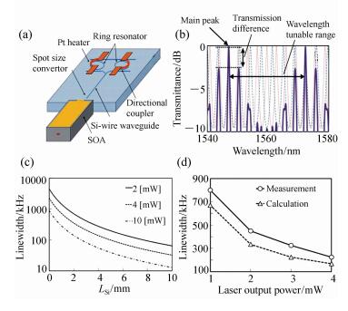 With the development of ultra-high speed optical interconnection, coherent optical communication and coherent detection technology, more stringent requirements are put forward for the linewidth, power and stability of laser source. Based on their own different advantages of silicon photonic chip using CMOS(Complementary Metal Oxide Semiconductor) technology and semiconductor gain chip, the narrow linewidth semiconductor laser with compact structure, low power consumption and high stability can be realized by one single silicon photonic chip and one single semiconductor gain chip integrations, which becomes a hotspot in recent years. The structure can provide the optical feedback to narrow the linewidth by microring resonator, loop mirror and Mach-Zehnder interferometer, and realize the wide tuning range and stable output power. In this paper, the latest research progress of silicon photonic chip external cavity semiconductor laser and several structures containing microring resonators are introduced, and the technical problems, such as increasing the coupling efficiency and reducing the reflectivity of the end face, are discussed in detail. For future applications of space optical communication and optical interconnection, we prospect the future research direction of such lasers in power upgrading and photonic integration.