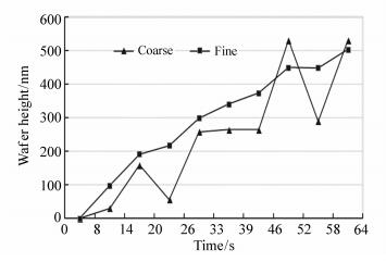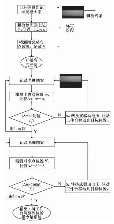 Charged particle beam imaging inspection technology is widely applied in semiconductor industry to find defects on wafers with nanometer degree measurement accuracy. During the wafer inspection, the wafer to be measured is supposed to be in the range of depth of focus(DoF) of the electron beam. In this paper we propose a close-loop wafer height control technology with millimeter range, nanometer accuracy and sub-microsecond height measurement time. It combines coarse control and fine control with an identical optical wafer height measurement system. During the coarse control, the imaging plane of the digital camera functions as a pure optical sensor. The wafer height information is obtained by measuring the displacement of one certain grating line. When approaching to the target position, the imaging plane changes to be a virtual digital grating. The so called optical vernier caliper, analogous with the mechanical vernier caliper, is constructed with the optical grating image and the digital grating image when there is some period difference between them. The experiment shows that such structure subdivides pixels by a factor of 10×or more on the image plane. When the system is used to measure the wafer height, the coarse measurement range is in millimeter degree and the coarse measurement time is 0.38 ms. The fine measurement resolution is less than 80 nm, and the fine measurement time is 0.09 ms. The close-loop feedback control is conducted with the system. The preliminary experiment shows the control accuracy is 15 nm. Such nanometer degree focus control accuracy is most advantageous in the charged particle beam inspection in the future.