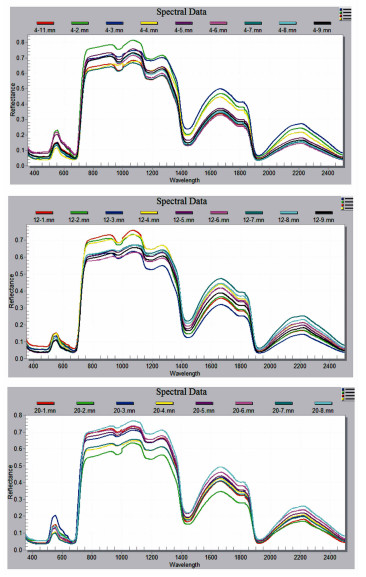 In order to study the spectral response and change rule of Larix olgensis Henry to copper stress, sampling points were arranged along three exploratory lines in Shujigou mining area of eastern Liaoning province. Several heavy metal concentrations in the surface soil and reflectance spectra of Larix olgensis Henry needle leaves of each sample point were measured. 7 characteristic wavelengths were extracted and spectral angles of several band regions were also calculated respectively. Then the spectral signatures changes in copper-stressed needle leaves and soil copper concentrations were disposed by bivarite correlations analysis and regression equation were estimated. Results showed that the correlation coefficient of the "Red trough" parameter and soil copper concentration was the largest among them, and that the coefficient of determination(R2) of regression model based on the reflectance of "Red trough" was 0.865. The spectral angles were very sensitive to spectral changes of copper stressed Larix olgensis Henry needle for wavelength from 400 nm to 716 nm and wavelength from 400 nm to 2 500 nm, which has been proved to be an efficient tool for describing the spectral differences between copper-contaminated leaves and healthy ones. However, the red edge position(REP) and reflectance of REP had little to do with the content of heavy metals in soil and were not suitable for determining copper contamination in soil. The fact that "Red trough" parameter and spectral angles are sensitive to visible light demonstrates that the difference in the reflectance spectrum is mainly controlled by chlorophyll content, and only a small part of the difference is affected by the water content of needles. The fingerprint effects of "Red trough" and spectral angles in this paper can provide new technology to support the diagnosis and monitoring for mine contamination and locate the future mineralization.