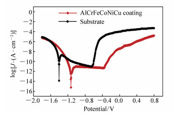 To improve the mechanical and corrosion resistance of an aluminum alloys, laser deposition(LDP) was used to form an AlCrFeCoNiCu high-entropy alloy(HEA) coating on an aluminum alloy surface. The phase structure, microstructure, micro-hardness and corrosion resistance of the HEA coating were investigated using X-ray diffraction(XRD), scanning electronic microscopy with energy-dispersive spectroscopy(SEM-EDS), a microhardness tester and an electrochemical workstation. The experiment revealed that the coating had excellent adhesion to the substrate. The HEA coating consisted of body-centered cubic(BCC) and face-centered cubic(FCC) phases, while the microstructure was shown to be a typical dendritic structure. The coating had an average micro hardness of 528Hv0.2, which is five times greater than that of the substrate. Corrosion of the samples was shown to be pitting and intercrystalline corrosion in a 3.5%NaCl solution, and the corrosion resistance was superior to that of the substrate. Thus, AlCrFeCoNiCu HEA coating has been demonstrated to be an effective way of improving the surface properties of aluminum alloys.