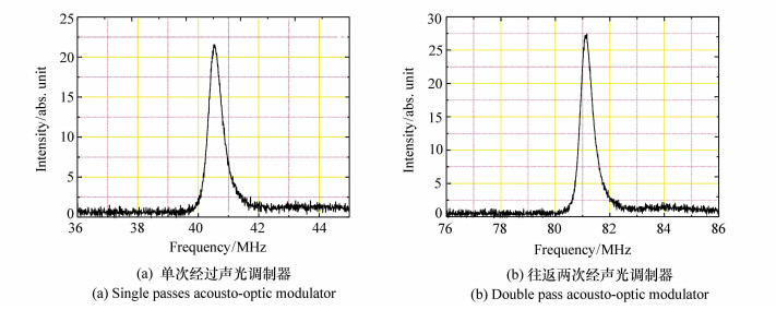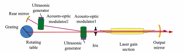 A rapid tuning pulsed CO2 laser is presented using a blazed grating system and a pair of acousto-optic modulators. Firstly, the characteristics of acousto-optic modulators were studied through experimentation. The results showed that the deflection angle of the acousto-optic modulator was approximately 4.4°, which was in agreement with the calculations of the Bragg equation. When a single laser passed the acousto-optic modulator, the shift in frequency was approximately 40.68 MHz, which was in agreement with the acousto-optic driving frequency. In addition, when multiple lasers passed through the acousto-optic modulator, the shift in frequency was compounded. Based on the acousto-optic modulator results, experimental research was performed on rapid tuning pulsed CO2 lasers. In order to offset the shift in acousto-optic frequency, two acousto-optic modulators were placed symmetrically in the deflected optical beam, and a laser output was obtained. Using a blazed grating, a full band tunable output laser was obtained in the linear optical beam. Finally, under sequential control of double acousto-optic modulators, a double wavelength laser with rapid tuning output and a common optical axis was obtained. The tuning time of the pulsed laser was approximately 1 ms, which pulsed at a width of less than 300 ns. The tuning speed of the pulsed laser was independent of the transition band of the CO2 laser.