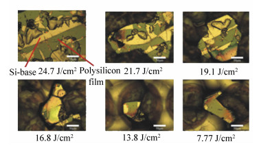 In order to understand the ultrafast laser-induced damage mechanisms of typical imaging sensor's film structures, the damage characteristics of Si-based multi-layer films irradiated by a femtosecond pulsed laser were investigated, and the laser pulse fluence ranges and threshold conditions corresponding to various damage phenomena were evaluated. Si-based multi-layer films that were similar in structure of CCD were prepared by electron beam deposition. The damage characteristics of these films irradiated by a femtosecond pulsed laser with wavelength of 800 nm and pulse width of 100 fs under different pulse fluences and numbers were investigated using a metallurgical microscope. Experimental results showed that the laser-affected zone size increased linearly with pulse fluence in the range of 1.01 to 24.7 J/cm2. Surface damage caused by oxidation/amorphization, non-thermal ablation, and laser-induced plasma ablation could be observed in the laser irradiated zone, which tightly depended on the pulse fluence. Multi-layer damage could be observed and the damage probability increased from 1% to 51% in the pulse fluence range from 2.42 to 24.7 J/cm2. Irradiated by sequent pulses at a fluence of 1.01 J/cm2, the laser affected zone remained almost unchanged and the ablated depth increased with the pulse number. From the single pulse damage experiment data, the femtosecond pulse laser-induced surface damage threshold was evaluated to be 0.543 J/cm2 and laser-induced multi-layer stress damage threshold was linearly fitted to be 2.16 J/cm2. Sequent pulse irradiation with low fluence(≤ 1.01 J/cm2) also could lead to deep damage on the multi-layer film.