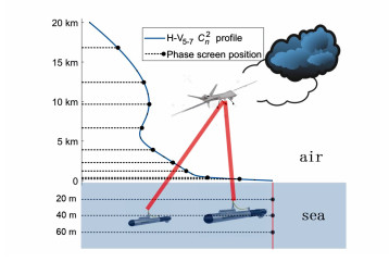 Effective communication between underwater platforms and aerial platforms has been a challenging issue in a long-time, due to the fact that either acoustic waves or electromagnetic waves can efficiently transmit only in the sea water or air, rather than both. As laser beams are able to penetrate a decent depth of sea water, free-space optical communications(FSOC) is considered to be a good substitutive approach. As is well known, the attenuation caused by absorption and scattering has proved to be the most significant adverse factor for underwater laser propagation, which, however, can only be compensated by a larger power margin. Nonetheless, even if the launching power is large enough to allow for affordable receiver sensitivity, the intensity fluctuation induced by atmospheric and oceanic turbulence can degrade the link performance to a great extent. This study addresses the turbulence effects on FSOC links between an underwater vehicle and an aerial platform. By use of wave optics simulation(WOS), the propagation of both the Gaussian beams and the annular beams in an air-sea two-section link is examined. The difference in performance between the uplink and the downlink is compared and explained according to numerical results. Generally, uplink suffers more from turbulence because the majority of turbulence lies nearer to its transmitter. Moreover, it is found that an annular beam always delivers a smaller scintillation index and a greater signal-to-noise ratio. This study is supposed to benefit the research and development of future air-sea optical communication systems.