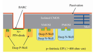Traditional CMOS image sensors generally use PN photodiodes or PPDs as the photosensitive element, which are formed based on N-well/P-type substrates using the LV-CMOS process. The PIN photosensitive element has small junction capacitance and high quantum efficiency. By using High-Voltage CMOS(HV-CMOS), monolithic integration of CMOS circuits with PIN photodiodes can be achieved. In this paper, the relationship between the photo-response characteristics, NEP of CMOS detectors and pixel size and reset voltage are studied. The results show that the pixel charge gain can be increased by about one order of magnitude when the photosensitive element is changed from PN to PIN and the transient charge gain of the pixel is larger than 1/Cpd. This is closely related to the size of the diode and reset voltage. It is found that small pixels are more suitable for fast detection of short integration time under weak signals because of their higher charge gain and lower equivalent noise. If combined with microlenses, small pixels can be further advantageous in low light detection.