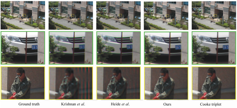 In order to meet requirements of the low cost and miniaturization of high-quality cameras, an optical/algorithmic co-design method for a large-field simple optical system is proposed. The residual aberrations of this simple optical system are corrected using an image restoration algorithm. Firstly, spatially varying cross-channel deconvolution is improved for large-field optical systems, wherein correction of lateral chromatic aberrations is introduced so that they can be significantly removed through the image restoration algorithm. Then, when designing the optical system, the constraints of chromatic aberrations are removed and we concentrate on optimizing the quality of the green channel to make the image sharp, which will help the restoration of images in the red and the blue channels in later cross-channel deconvolution. Using this method, a large-field simple optical system with two lenses of the same material is designed. The focal length of the system is 50 mm, the full field is 46 degrees, the F number is 5.6 and the resolution of the sensor is 10 mega pixels. Experimental results indicate that the image quality of the proposed simple large-field optical system is comparable to that when using a Cooke triplet lens and is better than that when using pure image restoration algorithms. Our proposed method succeeds as a simple large-field optical system and can obtain high-resolution and high-quality images.