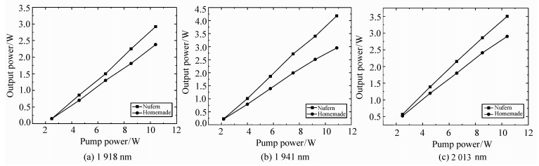 The optical fibers and devices used in thulium-doped fiber lasers(TDFL) are mostly produced by foreign companies. Therefore, it is necessary to develop TDFL based on homemade materials and devices. In this paper, the performance of continuous-wave thulium-doped fiber oscillators using a homemade gain fiber is reported. During the experiment, using a domestic thulium-doped fiber with a core diameter of 10 μm, homemade LD(laser diode) pump sources and fiber gratings, three oscillators were developed to generate laser output with central wavelengths of 1 918 nm, 1 941 nm and 2 013 nm, respectively. In addition, the laser output characteristics of the homemade and imported thulium-doped gain fibers were compared. The experimental results indicate that the output efficiency of the homemade thulium-doped fiber(TDF) is 6-11% lower than the imported TDF, but the homemade TDF has a similar spectral linewidth(about 0.1 nm) and a better near-field spot.