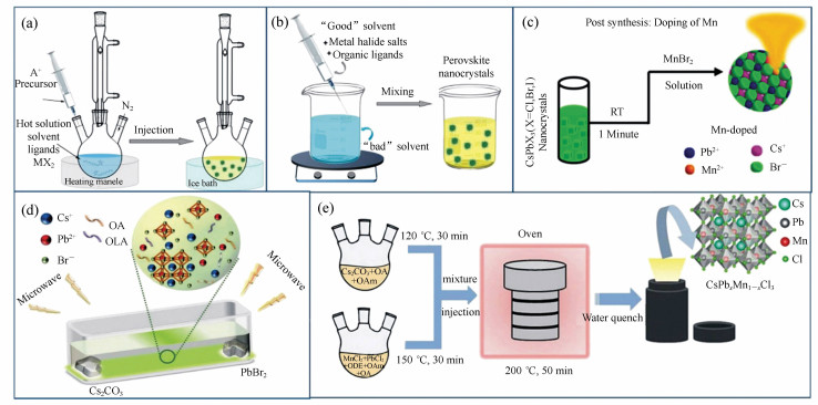 Colloidal Mn2+ doped CsPbX3(X=Cl, Br, I) nanocrystals(NCs) are being explored extensively as alternative emitting materials, wherein highly efficient optical and optoelectronic processes can be achieved. Mn2+ doping in perovskite NCs also reveals several new fundamental aspects of doping and new dopant-induced optical properties through different methods of synthesis. Mn2+ doping exists in wide-band-gap perovskite hosts where the excitation energy is transferred to an Mn d-state, resulting in short-range tunable yellow-orange d-d emissions. Enormous efforts have been expended on understanding the doping process and designing highly efficient doped NCs. The unique electronic and fluorescent properties endow these Mn2+ doped perovskite NCs with various optoelectronic applications in light-emitting diodes(LEDs) and solar cells. Combining all these facts, this review focuses on the recent progress in synthesis methods, emission mechanism, and potential applications of Mn2+ doped CsPbX3 perovskite NCs and provides an outline for plausible future studies.