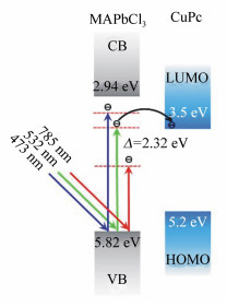 The charge transfer(CT) process plays a key role in the operation of the optoelectronic device system so a better understanding of the interfacial CT property is greatly important. In this paper, Surface Enhanced Raman Scattering(SERS) was utilized to study the interfacial CT property between CuPc and perovskites(single crystal and polycrystalline). The Raman spectra of CuPc adsorbed on the perovskite surface was enhanced. The laser wavelength dependent SERS study indicates that this phenomenon is mainly arising from the CT from the VB band of perovskite to the LUMO band of the CuPc molecules. In comparison, the SERS signal of CuPc molecules adsorbed on a single crystal is much stronger than that on the polycrystalline perovskite. This result indicates that the defect status affects the enhancement ability of the materials. Further study shows that, after the decoration of a thin silver film, the SERS spectra of CuPc on both single crystal and polycrystalline perovskites are further enhanced. The extreme enhancement is not only due to the electromagnetic property of the silver film but also the fact that the SPR of the silver enhances the charge separation of the perovskite, which further promotes the CT process between the substrate and adsorbed molecules. The CT based SERS study shows great potential application value in the field of optoelectronic research.