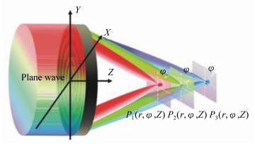 On the basis of traditional interferometric holography technology, we propose a purely optical three-dimensional display holography technology. A spatial light modulator is used to realize wavefront reproduction of object beams from a real object and holographic images of the object are presented on different planes through tomography. First, a wavefront sensor is used to acquire the wavefront information of the real object. After that, a single fast Fourier transform algorithm is applied to simulate the transfer function of the imaging lens in the optical path and a phase grayscale image containing the wavefront information of the object light passing through the lens is prepared. Then, the incident parallel light field is modulated using two spatial light modulators to achieve wavefront reproduction of the light field passing through the lens. Finally, according to the imaging principle of the lens, a CCD is placed on the imaging surface of the two objects to obtain their tomography. The experimental results show that the stereoscopic tomographic image of the detected object is observed at a distance of 298.5 mm and 337.6 mm from the spatial light modulator when the focal length of the simulated lens is set to 150 mm and the calculated diffraction distance is 150 mm, respectively. The lateral magnifications of the two front and back imaging planes in the x and y axes are (1.1, 1.08) and (1.34, 1.09), respectively. Compared with the lateral magnification (1, 1.2) calculated by the lens imaging formula, these relative errors are (10.6%, 8%) and (11.7%, 8%). The angular spread is 2.95° and 2.61°, respectively, and the relative error is less than 5%, which confirms the experiment principals. The experiment provides an effective research method for the subsequent three-dimensional display and new holographic technology.