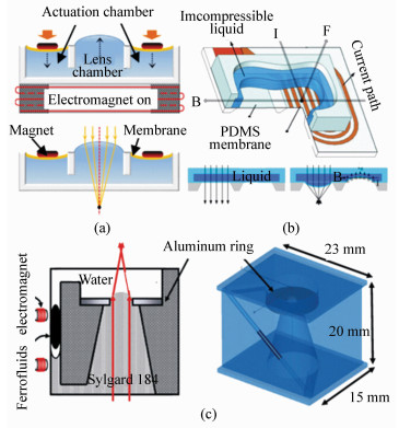 Compared with the traditional mechanical zoom lens, the variable-focus liquid lens has a smaller lens, faster response time, lower cost and higher integration capabilities. These lenses are widely used in image acquisition, target tracking and feature recognition. The performance and applications of liquid lenses are determined by the focal length adjustment method. This paper summarizes the progress of liquid crystals, dielectrophoresis, electrochemistry, electrowetting principle-based function control variable-focus lenses, electrostatic force, electromagnetic force, pressure regulation, and environmental-response-technology-based mechanical driven variable-focus lenses. The integrated applications of variable-focus liquid lenses in optofluidic chips are introduced. Also, the major obstacles and the settlement are described. Furthermore, the development potential and future research direction of the variable-focus liquid lens are also predicted and summarized.