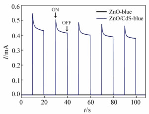 ZnO nanorods were prepared on ITO substrate using the hydrothermal method and then CdS quantum dots were synthesized on the ZnO nanorods with the chemical bath deposition method. The morphologies and crystalline structure of the as-prepared samples were characterized by SEM and XRD, respectively. The results indicated that after the chemical bath deposition, spherical CdS quantum dots were evenly coated on the surface of ZnO nanorods with good crystalline quality. The photodetectors made up of ZnO nanorods and ZnO nanorods/CdS quantum dots showed good response under ultraviolet(UV) irradiation. The photocurrent of ZnO nanorods/CdS quantum dots detector(0.52 mA) was 7 times higher than that of ZnO nanorods. In addition, the photodetector based on ZnO nanorods/CdS quantum dots exhibited good response to green and blue light.