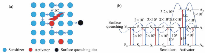 Laser-induced upconversion luminescence of lanthanide-doped nanoparticles has attracted great interest from researchers for many years due to its unique optical properties. The influence of solvents on the surfaces of these nanoparticles is a common problem in practical applications of these materials. However, traditional analysis methods are incapable of quantifying the influences of solvents. In response to this difficulty, we used a Monte Carlo simulation to reconstruct macroscopic upconversion luminescence at the microscopic level of ion-ion interaction. Then, we succeeded in obtaining quantified analysis results of the surface effects from four different aqueous solvents, which were water, methanol, ethanol and N, N-dimethylformamide(DMF). Both steady-state and dynamic spectra results show that the surface quenching rate of the upconversion nanoparticles in the highest to the lowest order of the four solvents are water, methanol, ethanol and DMF, which is attributed to the hydroxyl group and its activity. The computational simulation results show that the surface quenching rates of the Yb3+ excited state(2F5/2) in NaYF4:20%Yb, 2%Er upconversion nanoparticles in the four solvents are 2.5×104 s-1(DMF), 1×105 s-1(methanol and ethanol) and 5×105 s-1(water), which confirms our hypothesis.