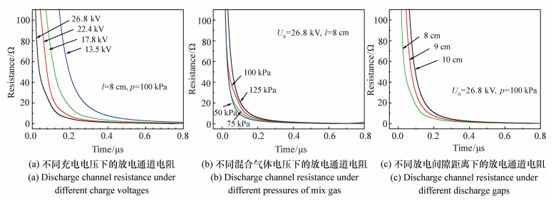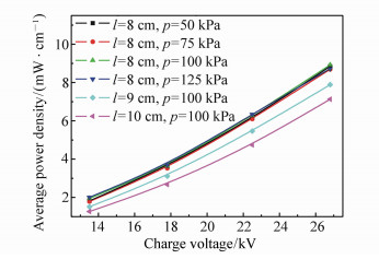 To obtain a lifetime of surface discharge optical pumping source, the sectioned-surface discharge optical pumping source with an Al2O3 ceramic substrate is developed. Based on the discharge voltage and the discharge current waveforms of a pump source, the discharge period, the discharge channel resistance, the energy deposition efficiency and the average power density of discharge plasma are investigated in detail under different conditions. The discharge period, the discharge channel resistance and the energy deposition efficiency increase with an increase in the length of the discharge gap and the pressure of the mixed gas. A trend toward the opposite is observed as the charging voltage increases. The average power density of discharge plasma mainly depends on the charging voltage and the length of the discharge gap but is almost unaffected by the gas pressure. Normally, the energy deposition efficiency can be more than 82% and the average power density of discharge plasma is 9.36 MW/cm when the charging voltage is 26.8 kV, the discharge gap length is 8 cm, and the gas pressure is 100 kPa. The experimental results show that Al2O3 ceramic surface discharge optical pump source performs good discharge characteristics, and has a higher average discharge plasma power density than Teflon surface discharge optical pumping source under the same conditions, which results in a better vacuum ultraviolet radiation intensity and a brightness temperature above 23 kK. An Al2O3 ceramic surface discharge optical pumping source is appropriate for optical pumping XeF2 to obtain a high power XeF(C-A) blue-green laser.