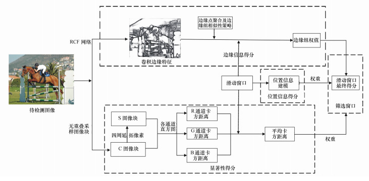 Region proposals are usually used to efficiently detect objects in object detection. In order to solve the problem that the region proposals have low quality, the convolutional edge features, object saliency and position information of objects are introduced into the region proposals algorithm. Firstly, the edge features with semantically meaningful information are generated from the images to be detected using the convolutional neural networks, and the score of edge information for per sliding window is obtained through the strategy of edge clustering and the similarities between the edge groups. Then, the salient object scores of each sliding window are computed using the local features of salient objects. Thirdly, the scores of object position information are calculated according to the location where objects may occur. Finally, the region proposals are determined by three components including edge information scores, salient object scores and the object positions scores. The experimental results in PASCAL VOC 2007 validation set show that given just 10 000 region proposals, the object recall of the proposed algorithm is 90.50%, that is increased by 3% comparing with Edge Boxes with intersection over union threshold of 0.7. The run time of the proposed method is about 0.76 seconds for processing one image, and this demonstrates that our approach can yield a set of region proposals with higher quality at a fast speed.