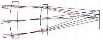 When taking the film diffractive optical elements as main lens, large aperture diffractive telescope has the characteristics such as low mass density(surface mass density can reach 0.1 kg/m2), loose surface shape tolerance(surface accuracy requirements are the magnitude of centimeter) and low launch costs. In this paper, the imaging theory and the configuration of diffractive telescope are discussed. Then, the calculation process of the initial structure of this optical system is derived. A prototype system with 300-mm aperture, 2-m focal length and working wavelength from 0.58 μm to 0.68 μm is designed and star image test and resolution board test are carried out. The test result of star image is close to diffraction limit, which is agree well with the design result. The work in this paper can provide theory foundation and initial model for diffractive telescope designer, and can help them to reduce design time and increase imaging quality.
