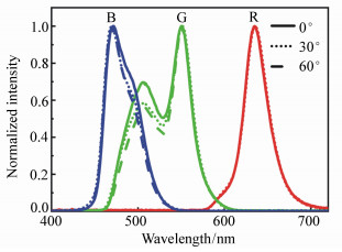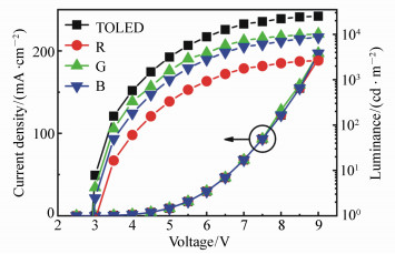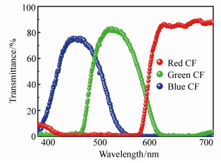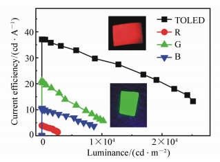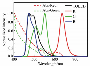 Top-emitting devices have the potential to achieve high aperture ratio of 100%, and thus it is very important for high-quality OLED displays. However, traditional fabrication methods used for achieving red, green and blue(RGB) OLED display are complicated and difficult, and spectral stability of such RGB OLEDs is always poor as time goes on. In this paper, to achieve color-stable RGB OLEDs, red and green quantum dots down-conversion films with microstructure are prepared by integrating CdSe/ZnS quantum dots into polymethyl methacrylate and using transfer imprint process, and then they are combined with efficient top-emitting blue OLED and color filters to achieve RGB emission using the same organic functional layers. RGB OLEDs exhibit a maximum current efficiency of 3.6, 21.9 and 10.6 cd/A, respectively, and their chromaticity coordinates are (0.70, 0.30), (0.24, 0.62) and (0.10, 0.20), respectively. Spectra and chromaticity coordinates of RGB OLEDs are almost invariable under different voltages, and emission of such RGB OLEDs also show excellent angle stability. This method used for realizing full-color OLED has the advantages of simple fabrication technique and low cost, and thus has broad development prospects.