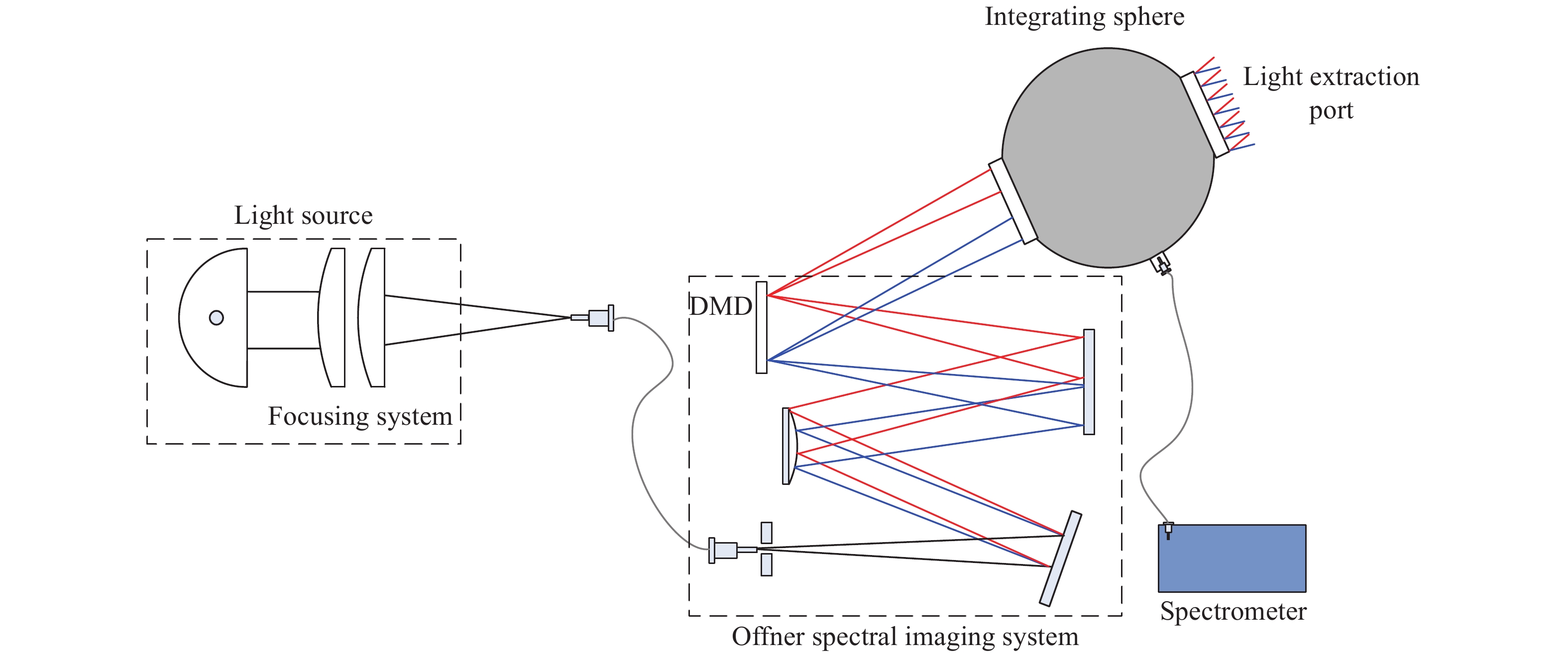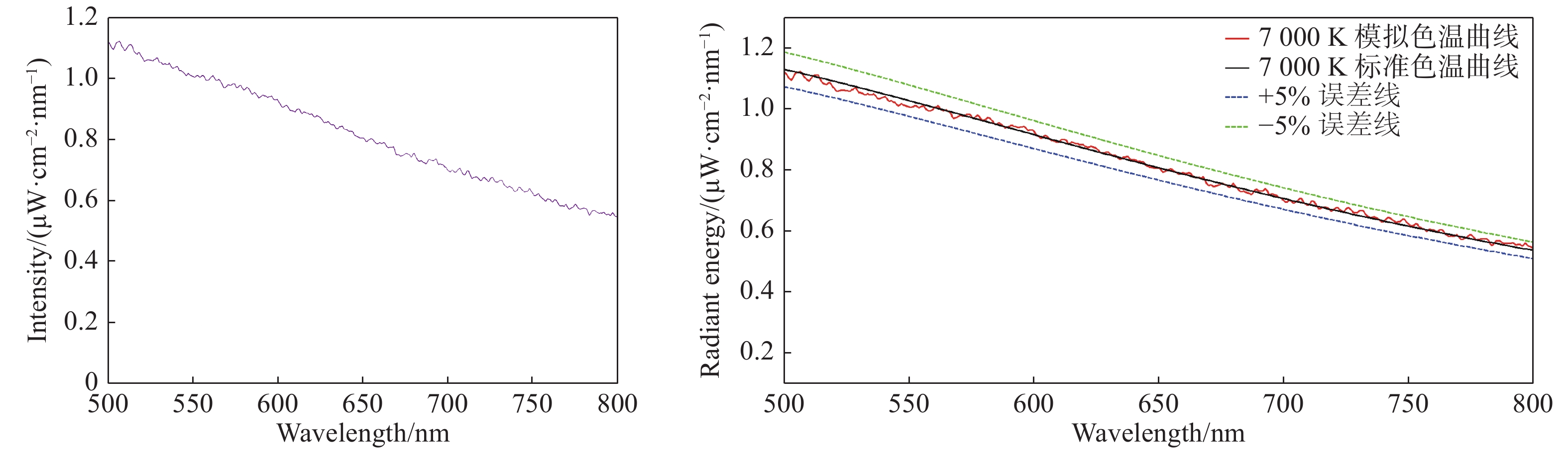 In order to satisfy the spectral radiance calibration of remote sensing instruments in different spectral distribution, reduce the influence of spectral radiance calibration light sources on the calibration coefficients of space optical remote sensing instruments, and solve technical problems of low spectral simulation accuracy and small spectral dynamic adjustment range, a design method for Offner type convex grating radiation calibration systems with a wide dynamic range based on spectral superposition and the principles of multi-spectral synthesis was presented, and its anastigmatic conditions were derived. The Offner spectral imaging optical system was designed with a cylindrical mirror with an accurate subdivision of broad spectral beams. Then, the mapping relationship between the array surface of the Digital Micro-mirror Device (DMD) and its spatial spectral radiation distribution was designed. The large dynamic range simulation of spectral distribution with the spatial light modulation characteristics of the DMD was achieved. Experiment results show that the interval of the spectral peak has an output by the adjacent unit array micro-mirror is greater than 0.5 nm, the spectral simulation accuracy of three typical color temperatures is 5.2% at T=3000 K, 4.1% at T=5000 K, and 3.2% at T=7000 K. The spectral simulation accuracy of the radiation calibration source was significantly improved, and the influence of spectral mismatch on the calibration coefficients of space optical remote sensing instruments was effectively diminished.