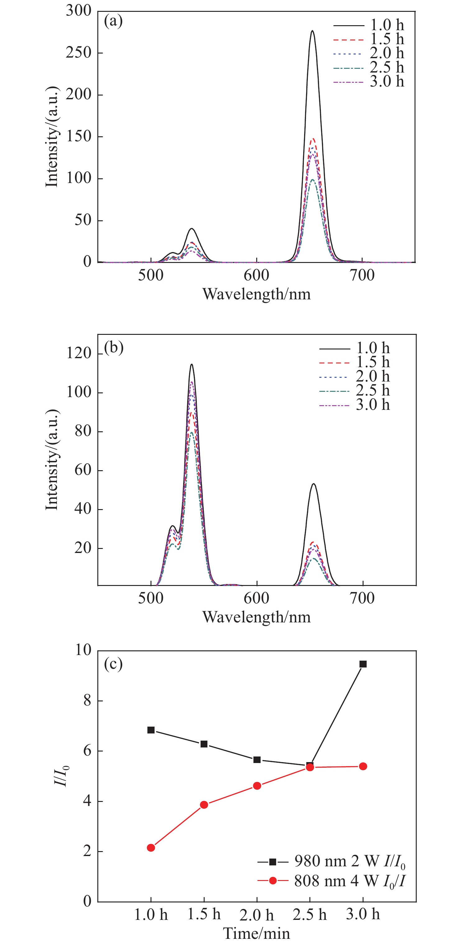 Upconversion luminescence nanomaterials have attracted widespread attention owing to their special optical properties, while most of them emit single color luminescence. In order to achieve multicolor orthogonal upconversion luminescence and avoid the synthesis complexity and interference between multiple dopant ions, herein, we reported a novel orthogonal emissive upconversion nanoparticle, NaErF4:Yb(19.5%)/Tm(0.5%)@NaYF4:Yb(10%)@NaNdF4:Yb(10%), through thermal decomposition strategy step by step. This novel nanoparticle can give out green luminescence and red luminescence by the energy level transition of Er3+ from 2H11/2,4S3/2→4I15/2 and 4F9/2→4I15/2 under the excitation light of 980 nm and 808 nm, respectively. The particles demonstrated uniform size, stable structure and excellent dispersibility. Under the excitation of 980 nm, the emission intensity at 650 nm of red luminescence was approximately 9.46 times more than the emission intensity at 540 nm. Under the excitation of 808 nm, the emission intensity at 540 nm of green luminescence was about 5.39 times more than the emission intensity at 650 nm.