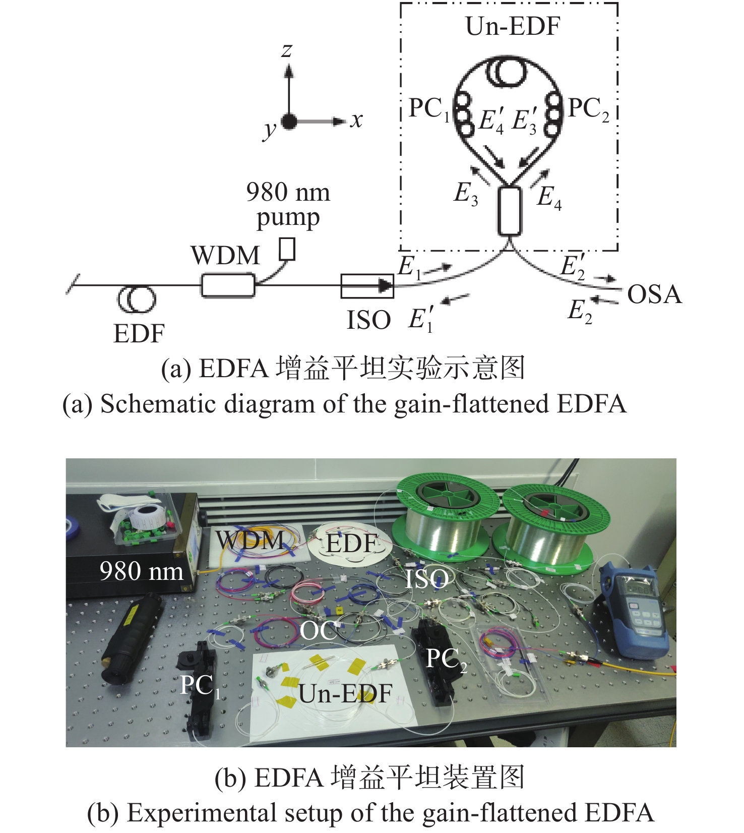 In order to achieve the simultaneous adjustment of multi-channel gain in the communications, especially in WDM, and to develop a wide range of stable light outputs in multi-wavelength fiber lasers, a research scheme of the erbium-doped fiber amplifier gain flattening characteristic at the transmission-port of a Sagnac loop with an unpumped erbium-doped fiber is proposed. The scheme is a combination of the self-resonance mode of the Sagnac loop, the absorption characteristics of unpumped erbium-doped fiber and the resonance mode caused by birefringence beat length in the loop. By adjusting the polarization controllers properly in the loop, the gain spectrum can be partially or completely flattened at the transmission port of the Sagnac loop. The results show that, on one hand, the part of the spectrum is flatted within ±0.145 dB in the wavelength range of 14 nm at the transmission port, but on the other hand, the total spectrum is flatted within ±1.225 dB over a bandwidth of 36.5 nm in the whole C-band at the transmission port. The gain spectrum flattening scheme has a simple structure and good flatness of the output spectrum. It is expected that this technology will be used in WDM systems and multi-wavelength lasers.