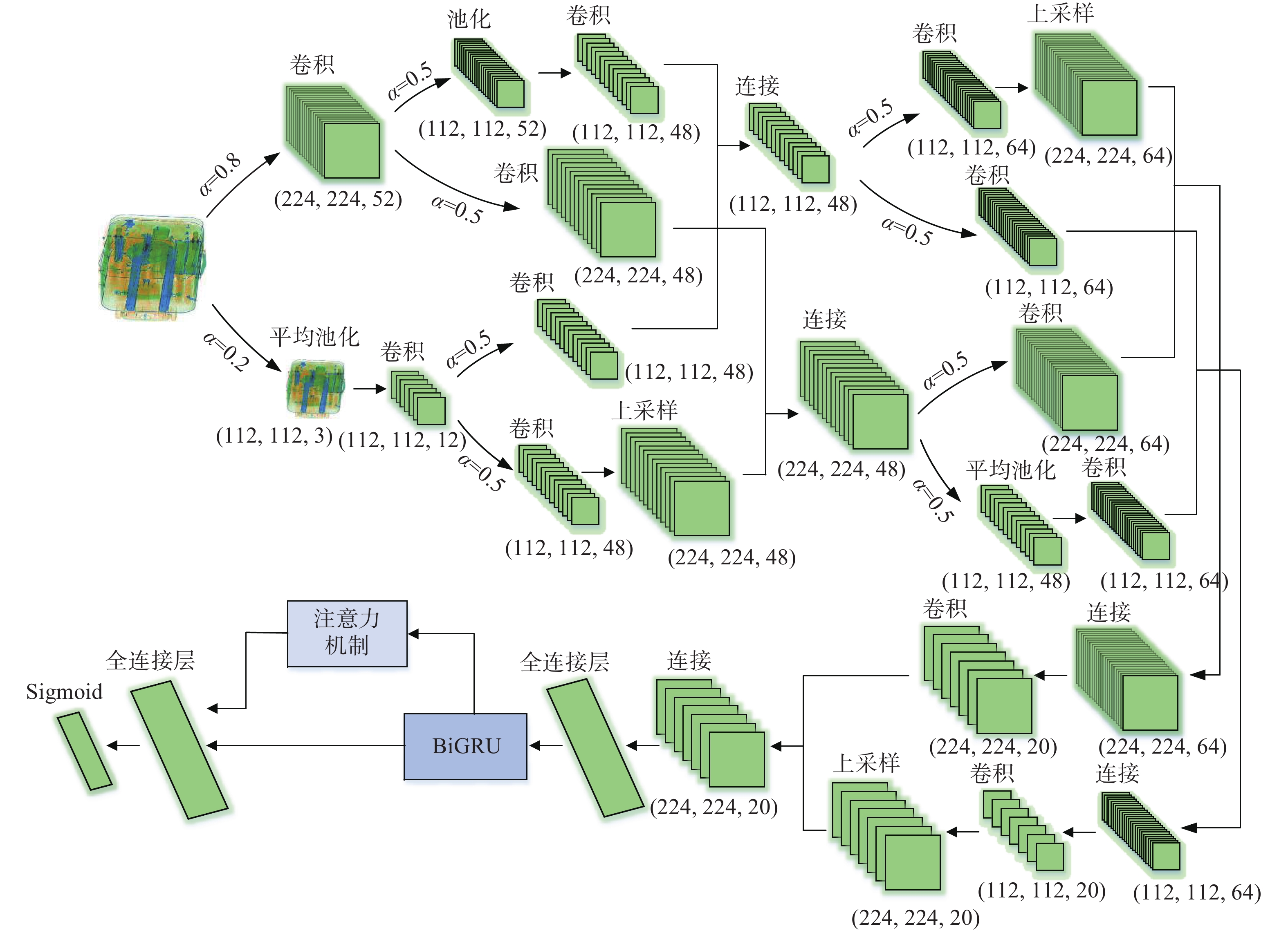 Due to the disadvantages of low accuracy and slow speed in the active vision security inspection method, it is not suitable for real-time security inspection. Aiming at this problem, we propose an x-ray inspection image classification algorithm combining octave convolution (OctConv) with attention-based bidirectional Gate Recurrent Unit (GRU). Firstly, OctConv is introduced to replace the traditional convolution operation to divide the input feature vector into high and low frequency, and reduce the resolution of low frequency features, effectively extracting the features of security image and reducing the spatial redundancy. Then, the feature weight can be adjusted by dynamic learning through attention-based bidirectional GRU to improve the classification accuracy of threat objects. Finally, a lot of experimental results on SIXRay dataset show that the classification accuracy, AUC value and PRE of 8000 test samples are 98.73%, 91.39% and 85.44%, respectively, with a time of 36.80 seconds. Compared with the current mainstream model, the proposed algorithm can improve the performance and speed of threat objects recognition in X-ray security images.
