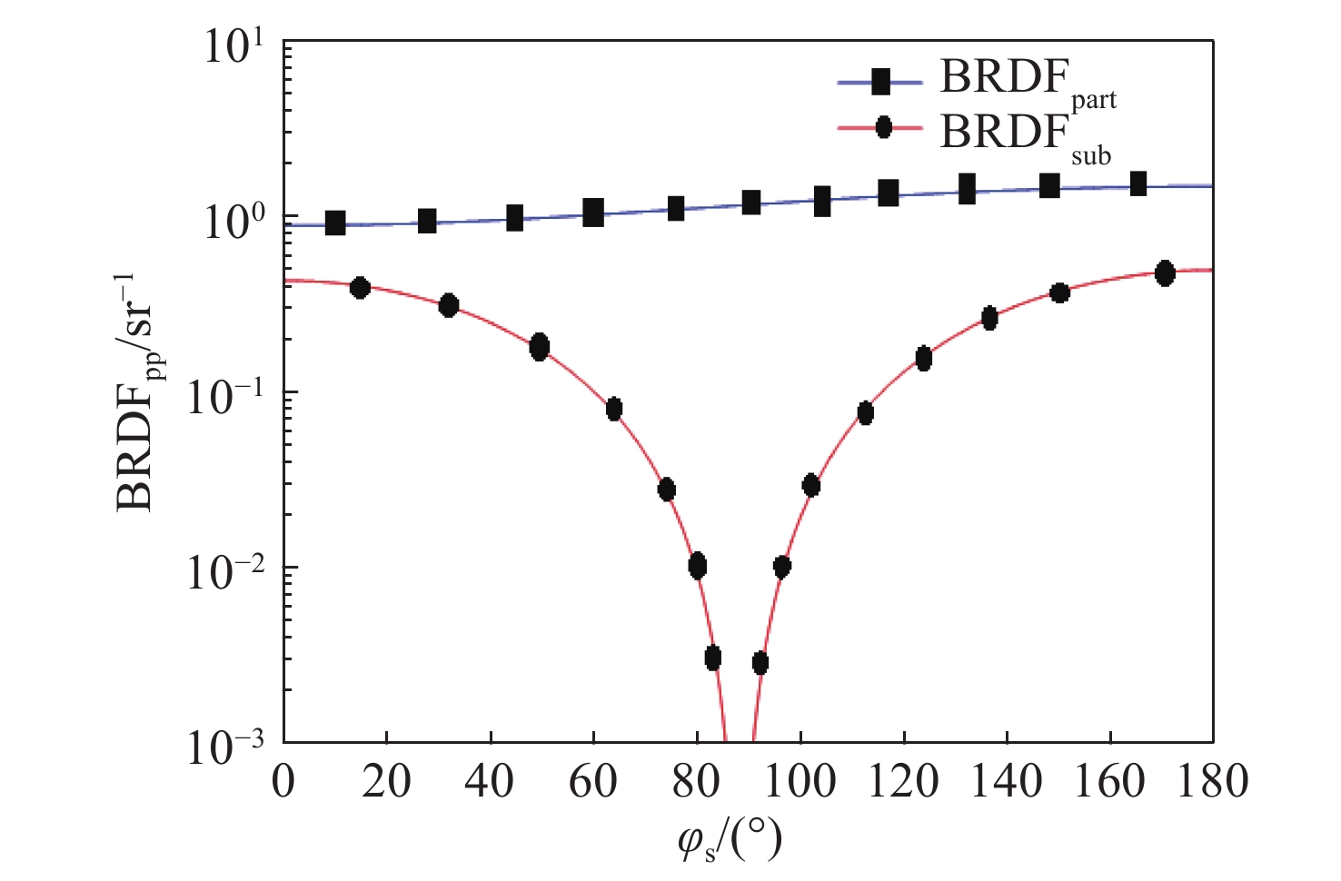 In order to distinguish between the two types of surface defects such as dust on the surface and bubble particles below the surface, and to obtain the applicable environmental range and optimal observation conditions of the method, we established and verified two polarization scattering models for surface defects based on Rayleigh scattering theory and a polarization bidirectional reflection distribution function. On this basis, the effects of the different defect environments and different observation conditions on the polarization scattering characteristics of the two surface defect particles were obtained through simulation analysis. The results show that by detecting the changing trend of the bidirectional reflection distribution function value of the p-polarized light incident on the surface with the scattering azimuth angle, we can distinguish between the two surface defects; no matter how the position of the bubble particles under the surface change, it will not affect the change of the trend. Different optical element surface materials, defect particle types, and defect particle size have certain effects on the polarization scattering models of the two surface defects, but the overall relationship remains unchanged. In order to distinguish between the two types of surface defects described in this article, the incident angle and the detection scattering angle are both 45° and an incident light with a smaller wavelength is used in an experiment.