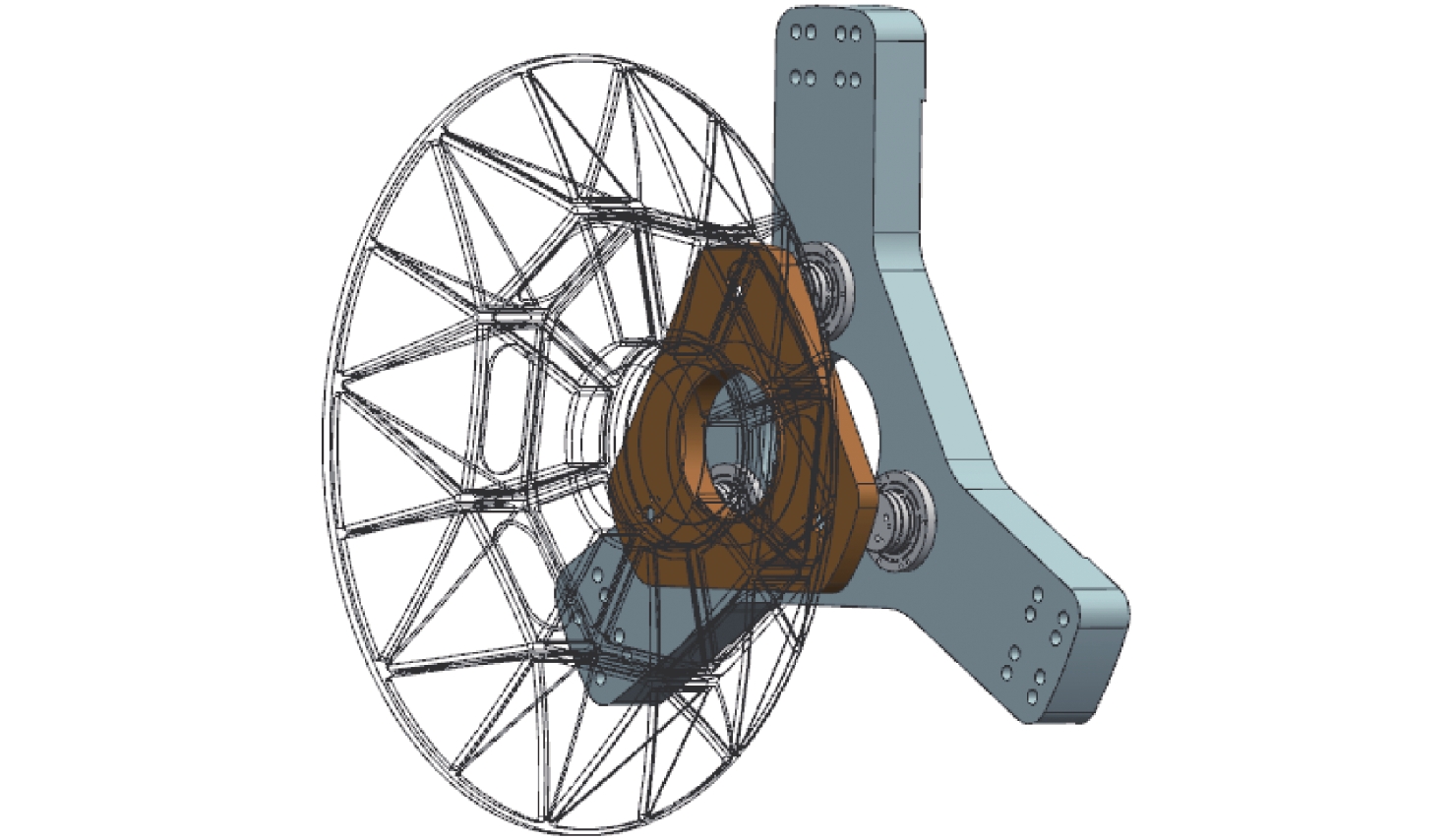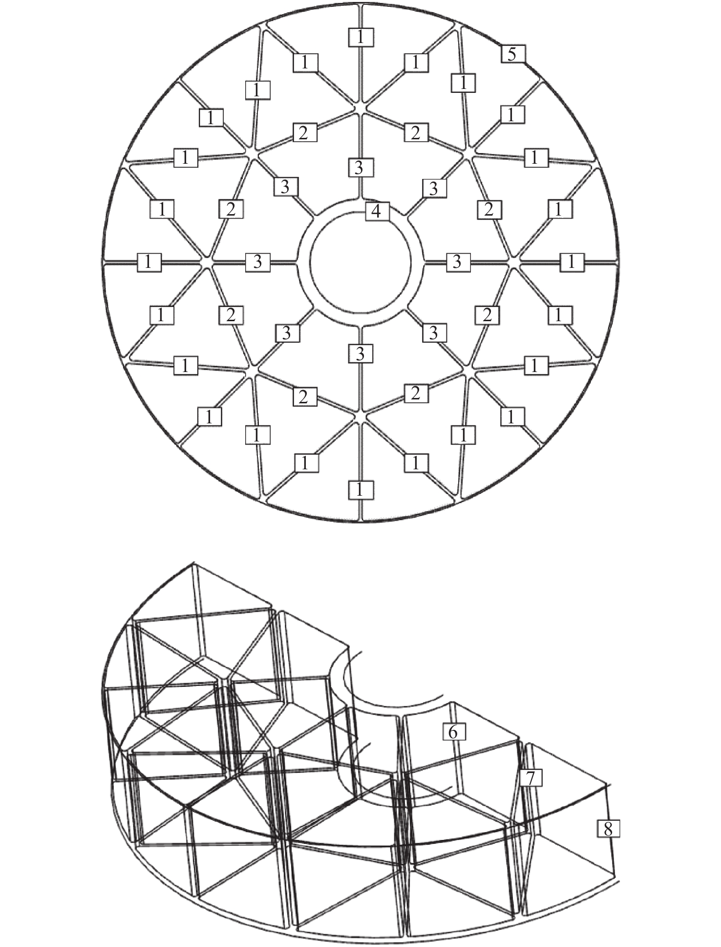 To meet the performance requirements of ultra-lightweight Φ500 mm-reflector optical system in near diffraction limit, the structure of the reflector is studied using advanced CAE simulation and modern high-performance SiC fabrication technology. Firstly, mirror materials were selected by comparing the common materials and manufacturing processes of existing mirrors. Then, with regards to the structural characteristics of circular symmetrical reflectors, the structure of proposed reflector was designed based on integrated optimization of the full stiffness method. Finally, the reflector assembly was designed with a back-support structure. The simulation results show that the mass of proposed primary mirror is less than 5 kg and the surface density is less than 20 kg/m2. The surface errors (RMS value) of the three directions of dead weight deformation at 4 ℃ temperature rise are less than λ/50. The first-order resonance frequency of the primary mirror assembly is no less than 120 Hz and the stress at the weakest point as measured by dynamic response analysis is less than 100 MPa. The structural optimization of the mirror meets its design requirements, with a remarkable lightweight effect and a structure that is both stable and reliable.