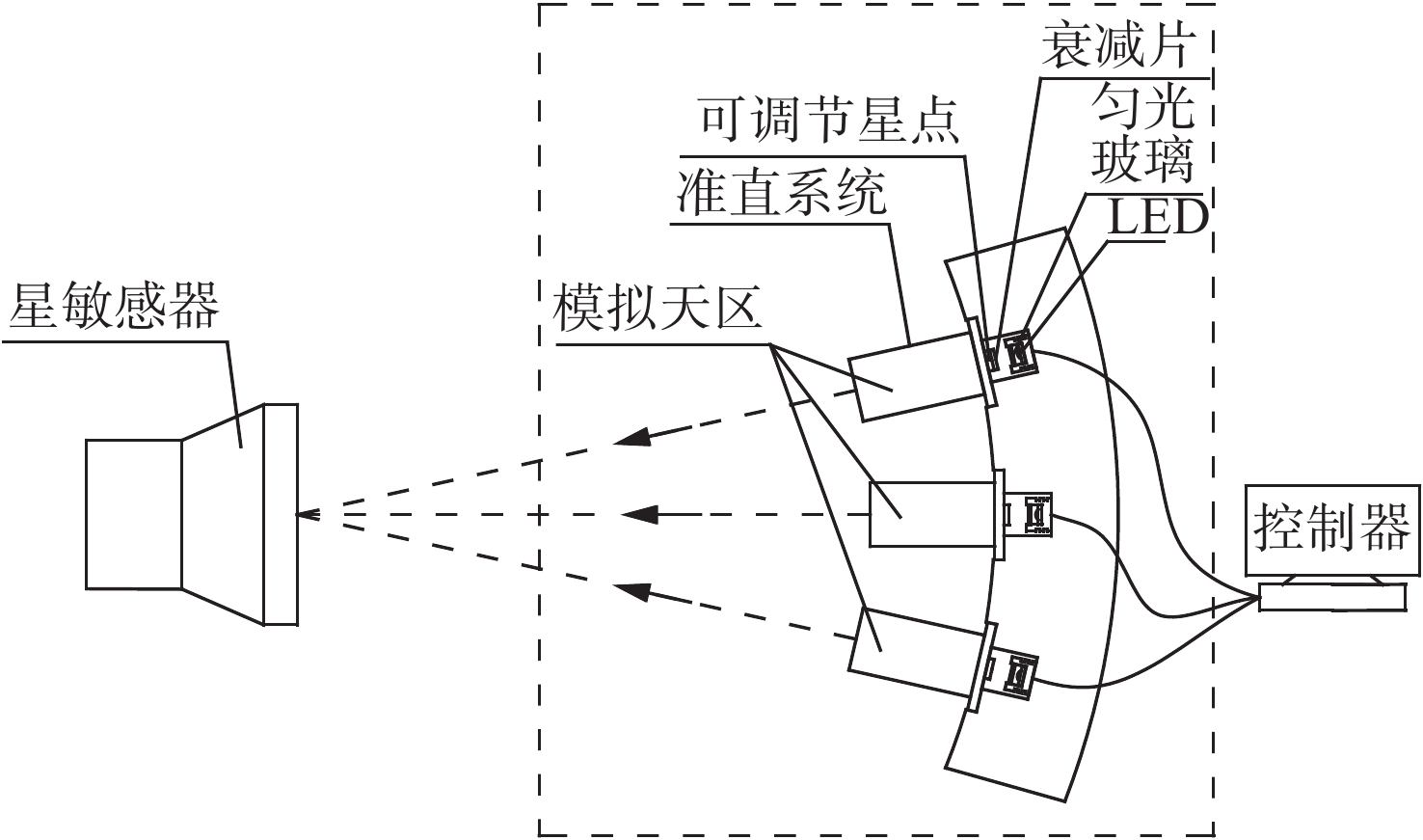 In order to achieve high-precision ground calibration of star sensors and meet the needs of a high-precision multi-star simulator with a wide field of view, a high-precision star simulator which can accurately simulate the position and magnitude of 65 stars in the 20° × 40° field of view was developed. Based on the principles of star simulators and the transformation of the space coordinate systems of star simulators, a simulation star bracket was designed. By the analysis and calculation of errors that affect the pointing error of star simulations, the high-precision simulation star system was designed using key technologies such as "integrated installation of primary and secondary mirrors", "all-aluminum simulation star systems" and "star point position compensation". A space-position model of each simulation star in the o-x'y'z' coordinate system was established, and the mathematical models of pitch, yaw, single star direction and star angular distance were derived. Also, the theoretical errors in single-star direction and star angular distance, which were used as the theoretical basis for adjustment and testing, were calculated. The single-star direction error of all simulated stars was better than 1.914", and the angular distance error of any two simulated stars was better than 4.3". The accuracy of the designed high-precision wide-field-of-view multi-star simulator meets the requirements. It can be used as an important piece of equipment for ground calibration of high-precision star sensors.