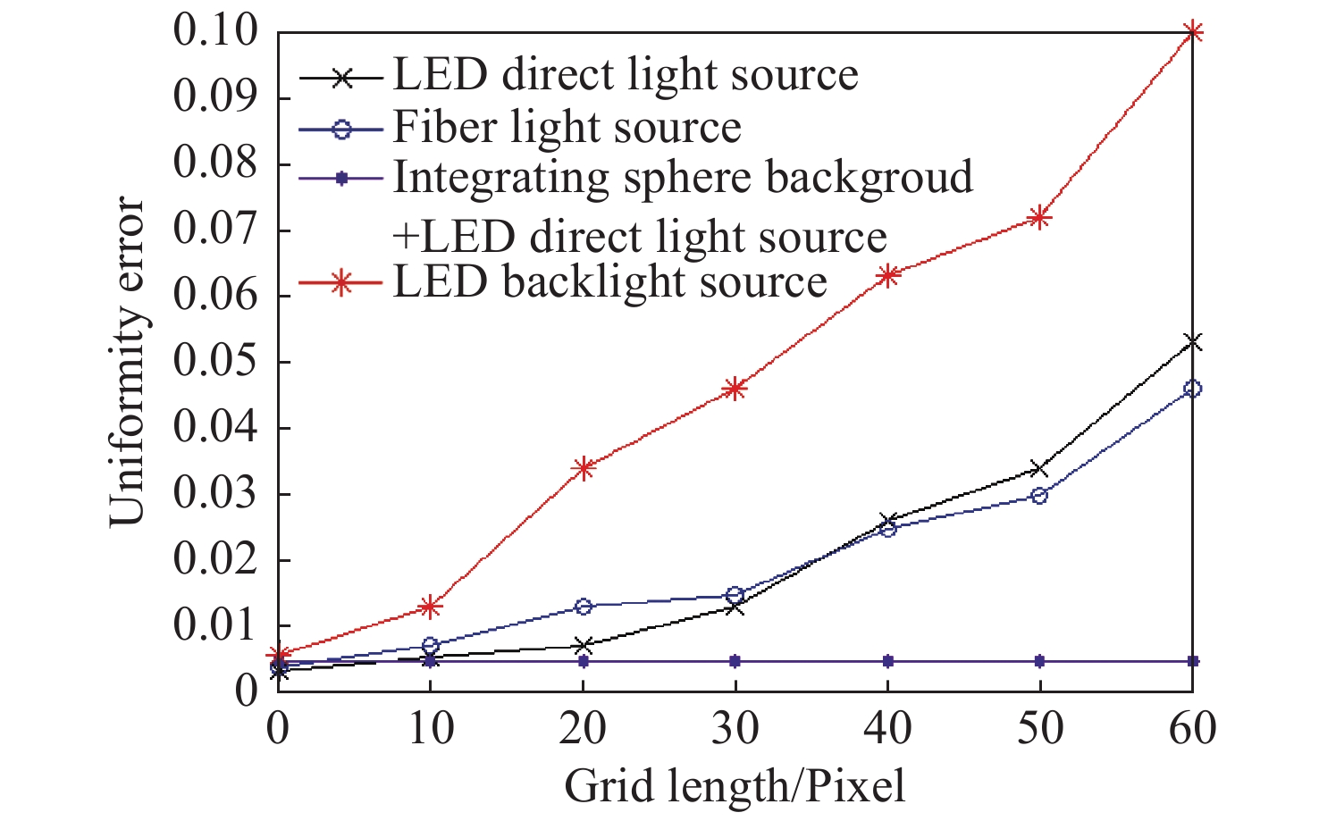 In view of the complex design of light sources and the poor illumination uniformity in cylinder block transverse hole detection by using machine vision, a double light source method is provided for the detection of transverse holes. In this method, an integrating sphere is used as the background light source and an LED is used as the direct light source. To achieve uniformity of illumination on the cylinder transverse hole, a mathematical model of the light source radiation response is established in this paper. Using this imaging method, a relationship between the size of the light source, its distance and the position of the reflection point and illumination uniformity is proposed. Finally, a controlled experiment was performed to reveal the illumination uniformity developed in different light sources: an optical fiber source, an LED source, and an LED + integrating sphere source. The results of the experiment show that the non-uniformity is up to 10% with an LED light source emitting from outside the hole, and it becomes 5% when the LED light is moved to the inside of the hole; the non-uniformity of an internal optical fiber light source is 4.6%. In particular, the double light source, wherein the integrating sphere is used as a background light outside the cylinder block and the LED is used as a direct light inside the cylinder block has a non-uniformity of 0.6%. The uniformity illumination surpasses 99%, which can be obtained by using an integrating sphere and LED dual light source, meeting our requirements for machine vision detection.
