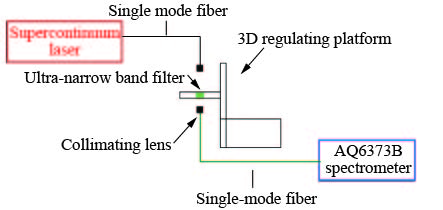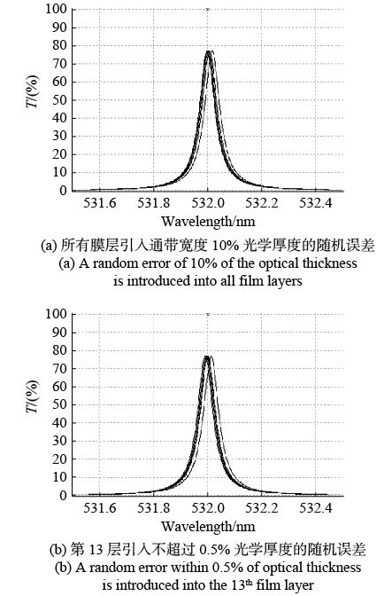 Owing to the strong penetrating ability in the atmosphere, 532 nm-wavelength green laser has wide applications including free-space optical communications and laser three-dimensional mapping. A spectral filter, with a half-power bandwidth of less than 100 pm, is an important optical element to suppress the interference of background light. Therefore, an ultra-narrow band-pass filter based on optical interference film is designed and fabricated in this paper. The high and low refractive index film are made of tantalum pentoxide (Ta2O5) and silicon dioxide (SiO2), respectively. The designed optical thin films are deposited on a fused quartz substrate by double-ion-beam sputtering deposition method. The transmission spectra of the filters are measured by a tunable laser and a power meter. The half-power bandwidths of the filters are (60±2) pm, and the transmittance reaches 62.6%.