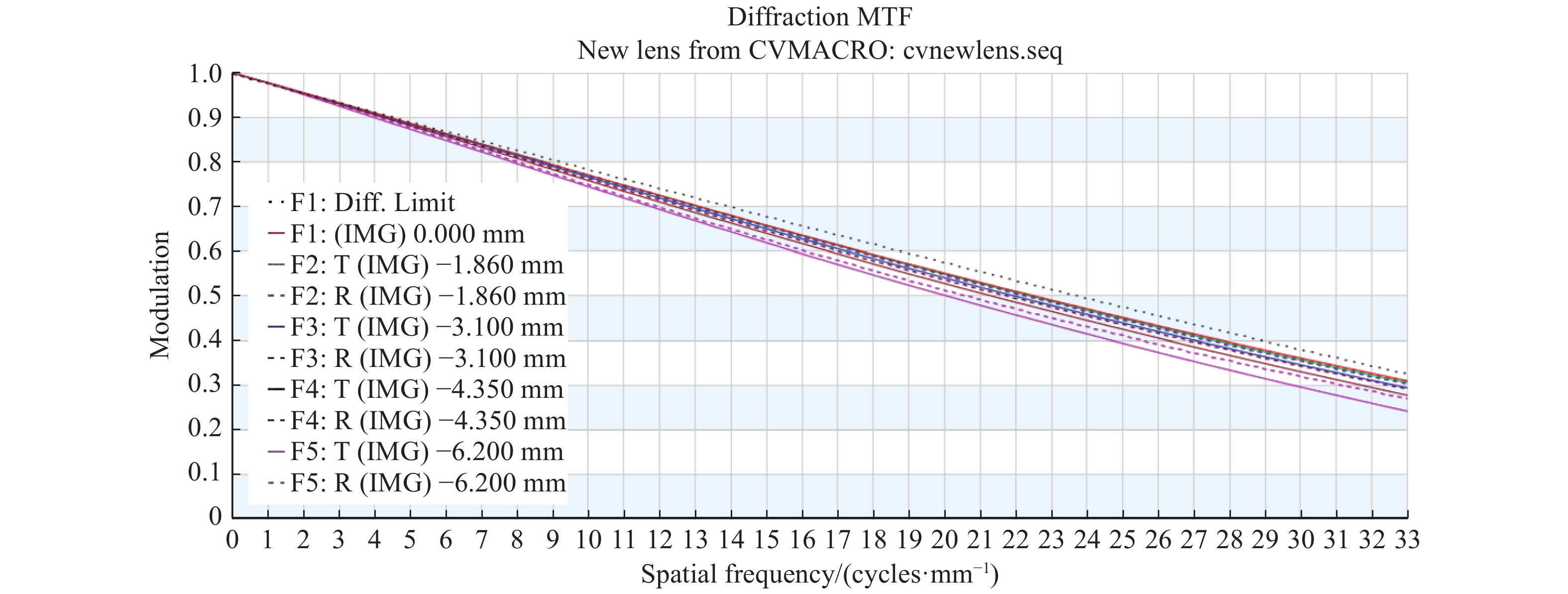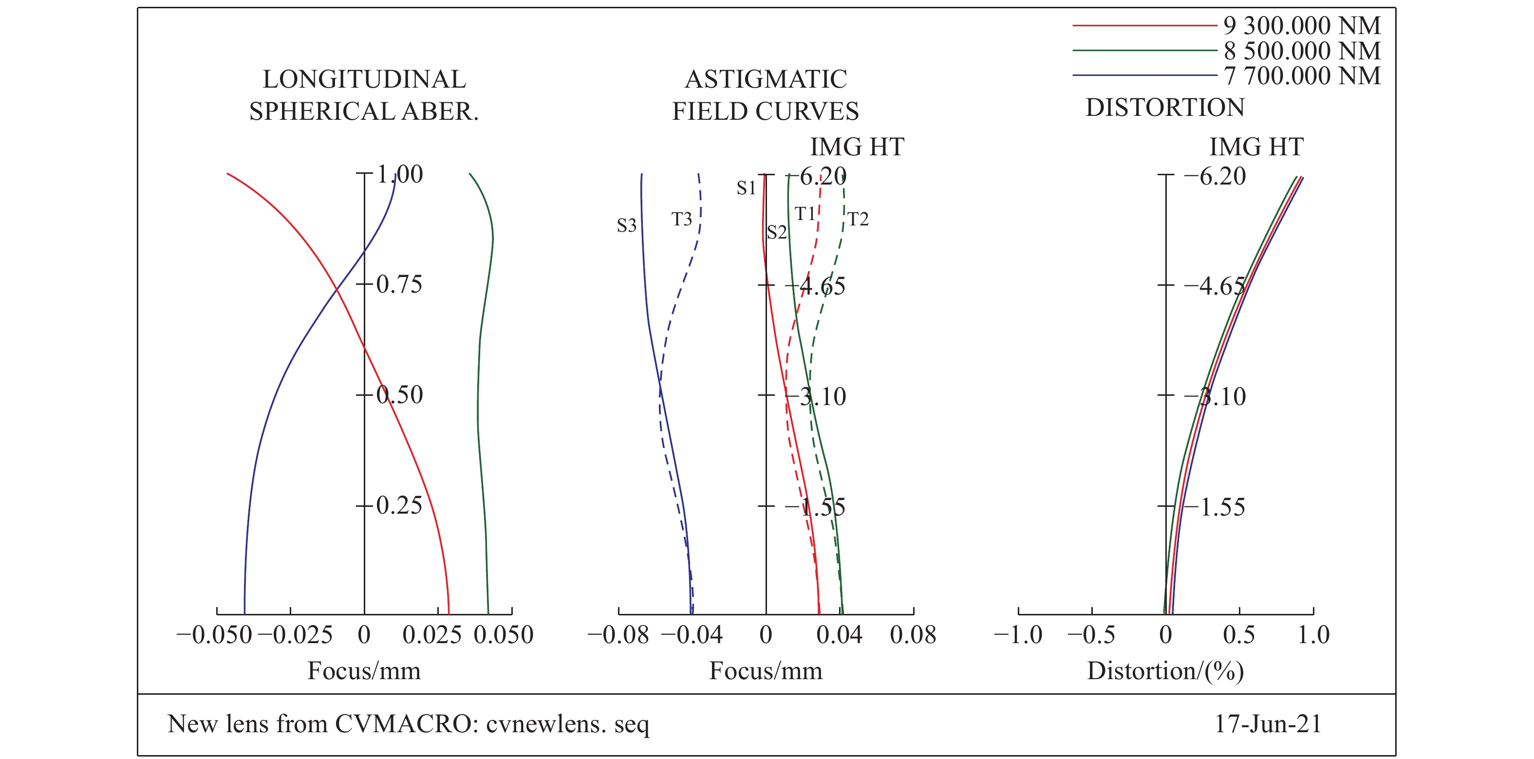 Aiming at 640×512 long-wavelength infrared cooled detectors, a cooled long-wavelength infrared optical system was designed to track and detect an infrared target. The optical system adopts the secondary imaging structure to ensure 100% cold-shielding efficiency, and adopts a combination of optical material Ge and ZnS to achieve aberration correction and achromatic design. By introducing the high-order aspheric surface, the high aberration of the system is well-corrected, thus the system structure is simplified. The optical system is composed of 6 lenses. The focal length is 400 mm, the working bands are 7.7~9.3 μm, the field of view is 1.37°×1.10°, and the F-number is 2. The design results show that at a spatial frequency of 33 lp/mm, the MTF of off-axis field of view is more than 0.24, which approaches the diffraction limit and has high imaging quality. In the operating temperature range of −35~+55 ℃, the focusing lens is used to ensure the imaging quality under high and low temperature environments, which can be used for infrared tracking detection over a wide range of temperatures.