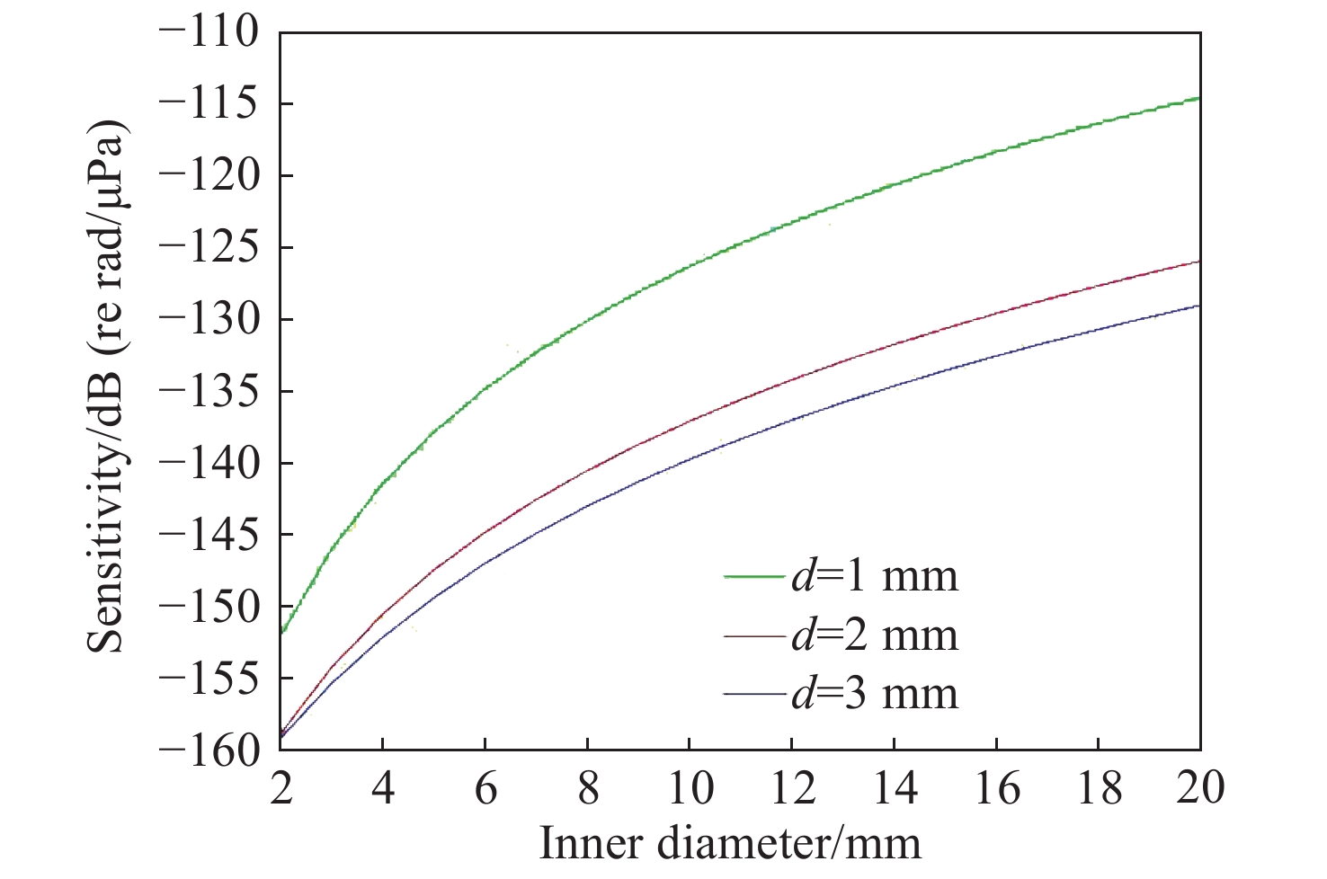 In order to improve the suitability of the fiber hydrophone towing line array, a flexible fiber grating hydrophone array was proposed.The sound pressure sensitivity of three flexible fiber grating hydrophones was calculated according to the mechanical theoretical model, and the influence factors were compared and analyzed. 2-element flexible fiber hydrophone sample arrays with diameters of 10 mm,12 mm and 16 mm were developed through finite element simulation for frequency response analysis. The sensitivity was measured by a vibration liquid column experiment. The experimental results show that the response is flat within the frequency range of 200~800 Hz, and the average sound pressure sensitivities of the hydrophone arrays with different structural parameters are −138.90 dB, −134.71 dB, and −136.12 dB, respectively. The theory and simulation analysis are verified. By further optimizing the material and structure parameters and using weak reflection fiber grating, an integrated flexible hydrophone array with hundreds of elements can be constructed according to the design in this paper.
