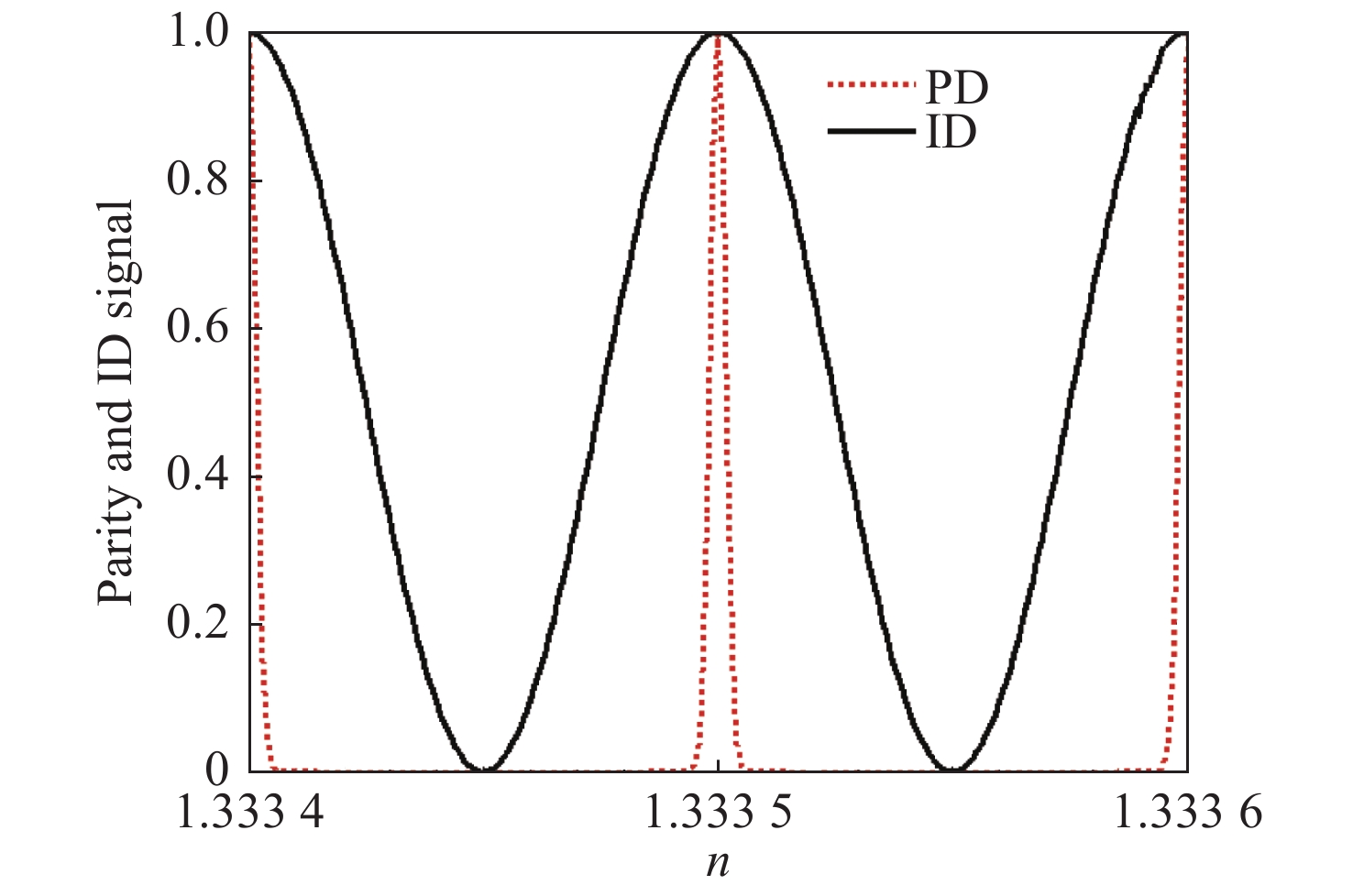 The refractive index measurements based on traditional wave optical methods are mainly depended on intensity and wavelength detection strategies. Interference spectrometers are widely used as the most ideal wavelength detecting devices. Interference spectrometers measure the signal intensity, analyze the change of fringe numbers and the corresponding optical path difference by means of optical power meter, and then calculate the wavelength of signal light. Therefore, its essence is still based on intensity detection. However, the resolution of interference signal in intensity detection is restricted by classical diffraction limit, thus its resolution is difficult to further improve. In order to solve this bottleneck, parity detection which could break through the classical resolution limit and realize super-resolution refractive index measurement is proposed in this paper. According to the quantum detection and estimation theory, the expressions for signals and their corresponding sensitivities of refractive index measurement with parity and intensity detections were derived respectively and their numerical comparison analysis was carried out. In addition, the effects of loss on resolution and sensitivity of the output signal were investigated. Numerical results show that the resolution of parity detection is