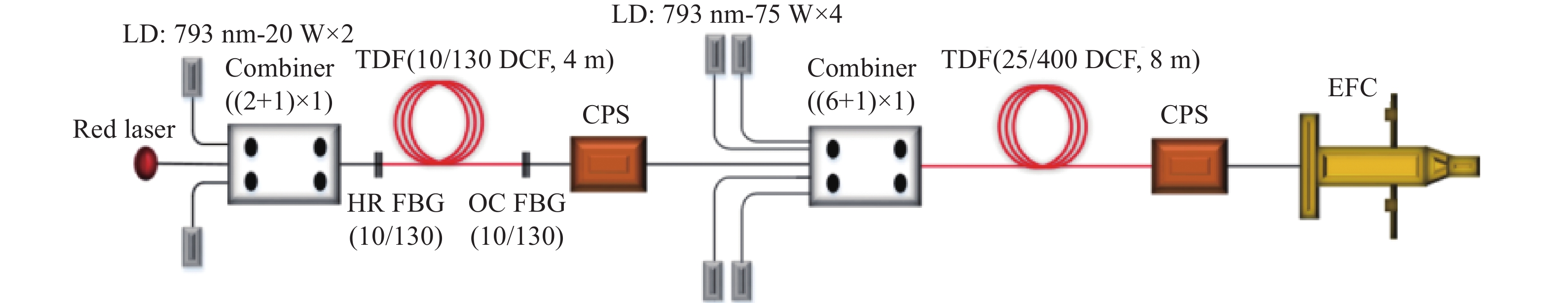 In order to improve the output performance of a high-power Thulium-Doped Fiber Laser (TDFL) and increase the optical-optical conversion efficiency of the system, a high-power TDFL with an all-fiber Main Oscillation Power Amplification (MOPA) structure was developed, which can operate in both Continuous Wave (CW) and Quasi-Continuous Wave (QCW) modes. First, a laser oscillator was built to study the output characteristics of the seed source laser. Then, a thulium-doped fiber amplifier was built and connected to the laser oscillator to study the output characteristics of the MOPA structured fiber laser. Finally, the pulse characteristics of the MOPA structured fiber laser were analyzed under the QCW modulation mode. The laser oscillator achieved a continuous and stable laser output with a central wavelength of 1940 nm, and the highest average output power was 18.56 W. The slope efficiency was 54.84%, and the spectrum was free of Raman components. Using this low-power continuous laser as the seed source through the homemade thulium-doped fiber amplifier, the average output power could reach 66.9 W, and the slope efficiency was 48.48%. When the system operated in the QCW mode, the frequency and duty cycle can be adjusted, and the peak power was calculated to be 80.3 W when the frequency was 75 Hz and the duty cycle was 10%. This research is of referential significance for the development of higher power MOPA lasers in the 2 μm band.