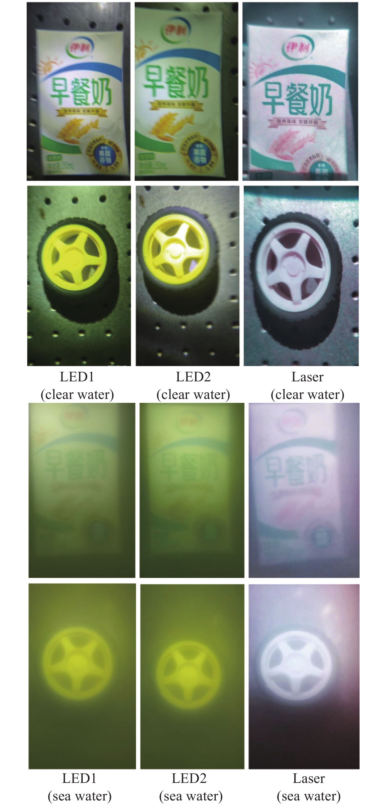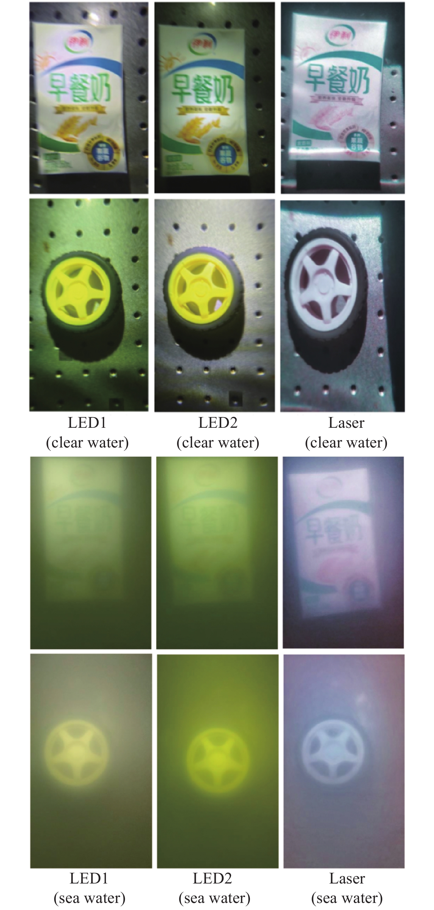 To solve the problems of short illumination distance and narrow spectral range in the current underwater detection technology, an underwater semiconductor white laser imaging system was established. The quality of the images captured by the system under different light sources and different conditions was studied. A white laser with a power of 220 mW and a color temperature of 6469 K synthesized by an RGB semiconductor laser is used as the underwater lighting source, which is respectively compared with three RGB monochromatic lasers and an LED white light source under different conditions. For these images, different algorithms are used to process, analyze and evaluate their quality. The results indicate that when the white laser is used as the underwater light source, the collected image is not only better than that with the LED white light source with respect to information detail and structural integrity, but also better than the monochrome laser in color reproduction of the target and the integrity of the edge feature information. The semiconductor white laser has the advantages of concentrated energy, strong color rendering, and high illuminance, and its light source performance can meet the requirements of underwater low-illumination imaging. With the same imaging system and imaging distance, images with stronger authenticity, better texture and more target feature information can be obtained.