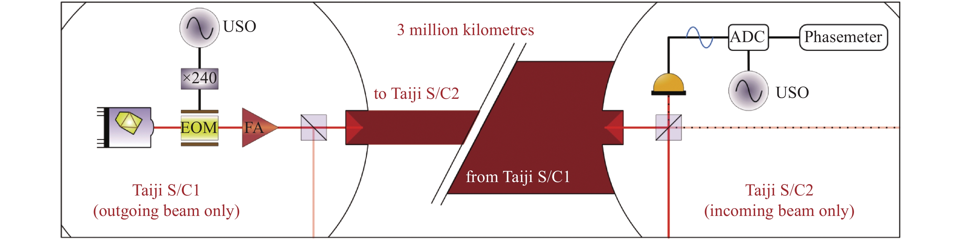 The Taiji program is a space gravitational wave detection mission proposed by the Chinese Academy of Sciences, which uses laser differential interference to detect pm-level displacement fluctuations caused by gravitational waves between satellites. In order to eliminate the phase measurement error caused by the desynchronization of the clocks in satellites, the Taiji program intends to use the sideband multiplication transfer scheme to measure and eliminate inter-satellite clock noise. We discuss the requirements, principles, and methods of inter-satellite clock noise transmission of the Taiji program, and design experiments for the principle verification. By building an electronics experiment system, the limit value of the clock noise of the two systems was tested, the relevant parameters of the experiment were determined, and the principle of the sideband multiplication transfer scheme was verified by further optical experiments. The experimental results show that the clock noise cancellation scheme and related parameters proposed in this paper are reasonable and feasible, and are suitable for the needs of the Taiji program. Moreover, in the 0.05 Hz−1 Hz frequency band, the suppression effect of inter-satellite clock noise is better than 2π×10−5 rad/Hz1/2, which meets the noise requirements of the Taiji pathfinder and lays an experimental and theoretical foundation for the design of a clock noise transmission scheme and parameters of the Taiji program in the future.