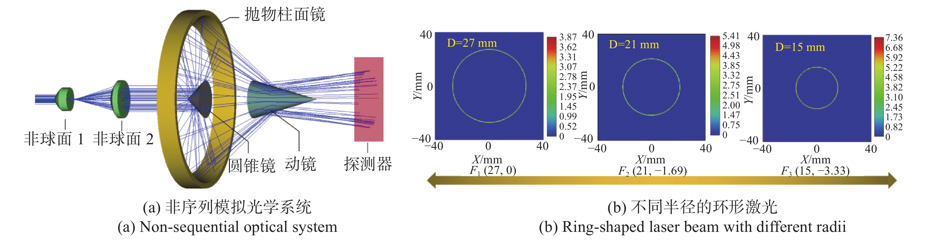 We present a method for designing a transmissive-reflective combined optical system to generate a focused ring-shaped laser beam. The design aims to achieve a freely adjustable radius for the focused ring-shaped laser beam and ensure uniform beam intensity even after defocusing. Based on the principle of equal energy splitting, the transmissive system establishes mapping functions for the input and output light projection height. It optimizes the lens parameters to shape the incident Gaussian light into a flat-topped circular shape, thus achieving uniformity of beam intensity. On the other hand, the reflective system uses the adjustable diameter range of the focal plane ring-shaped light and working distance parameters. By applying the principle of geometric ray tracing, it calculates the parameters of the conical reflecting mirror, parabolic cylindrical mirror, and dynamic mirror, then the flat-topped circular light is transformed into a ring-shaped light. The experimental results show that when the half-apex angle of the dynamic mirror is 16°, the designed system can achieve a freely adjustable radius for the focused ring-shaped laser beam from 15 mm to 30 mm with a size error not more than 0.05 mm, and the intensity uniformity after defocusing reaches 84%. The design method can achieve both uniformity of intensity and freedom of size adjustment without replacing the system lens. It has good operability and yields higher precision and efficiency in the processing of ring-shaped light.
