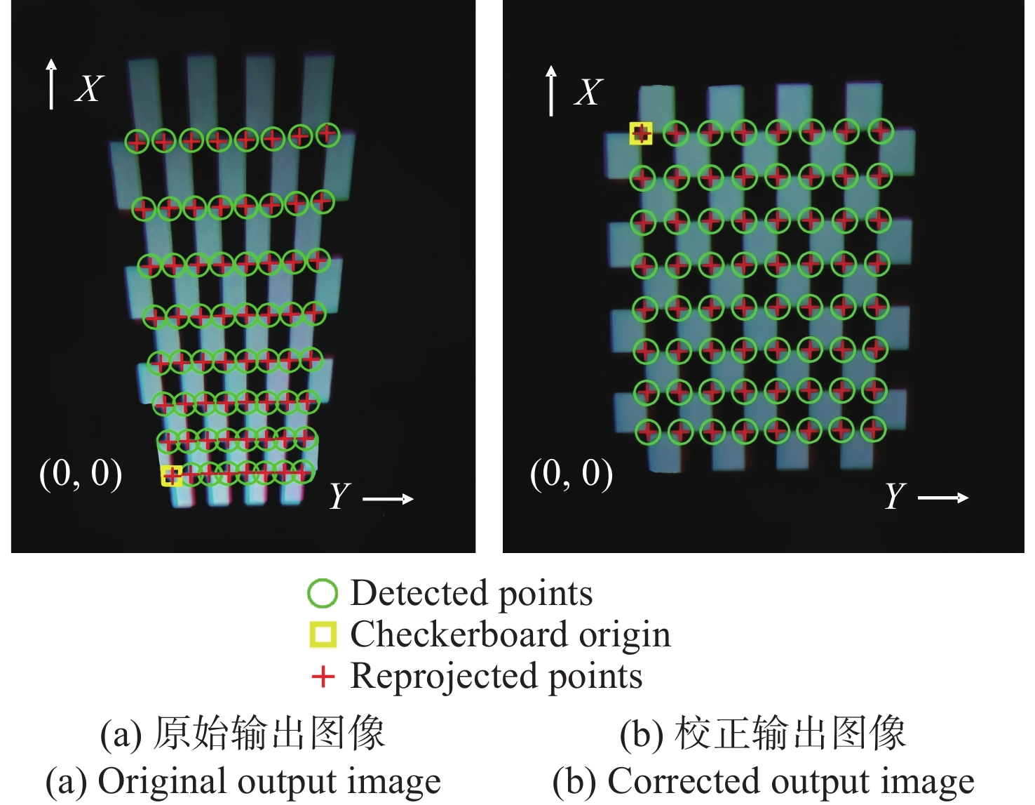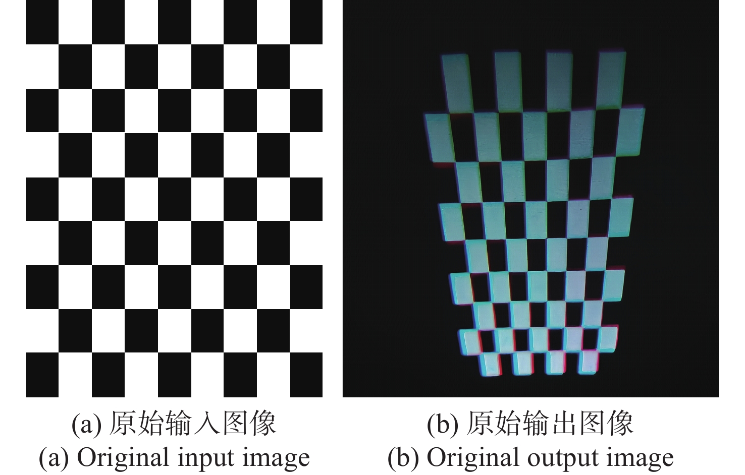 This article presents a vehicle headlight projection scheme based on Micro LED arrays. A 200×150 white Micro LED array with pixel size of 80 μm×80 μm is designed as the display light source, and a headlight projection optical system with a field of view of 16°×34° is designed. The object plane tilt angle and optical system structure are optimized. In addition, the inverse distortion processing method and pixel grayscale modulation method are used to solve the trapezoidal distortion and uniformity of illumination of the headlight projection image. A projection experimental platform is built to verify the image correction method. Experimental results show that after correction, the image trapezoidal distortion coefficients