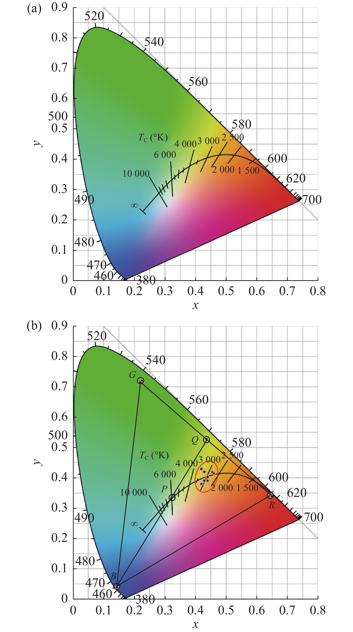 To provide high-quality, intelligent, and healthy lighting sources, a linear dimming mixed lighting system is constructed using three-primary-color LED light sources. An optimization method for dimming and color mixing is proposed. The light chromaticity and light intensity of the mixed light source are set by color temperature and brightness level, which makes the mixed lighting effect more in line with the demand of "human-centric lighting". In the intelligent optimization of the system, the color temperature is converted into CIE