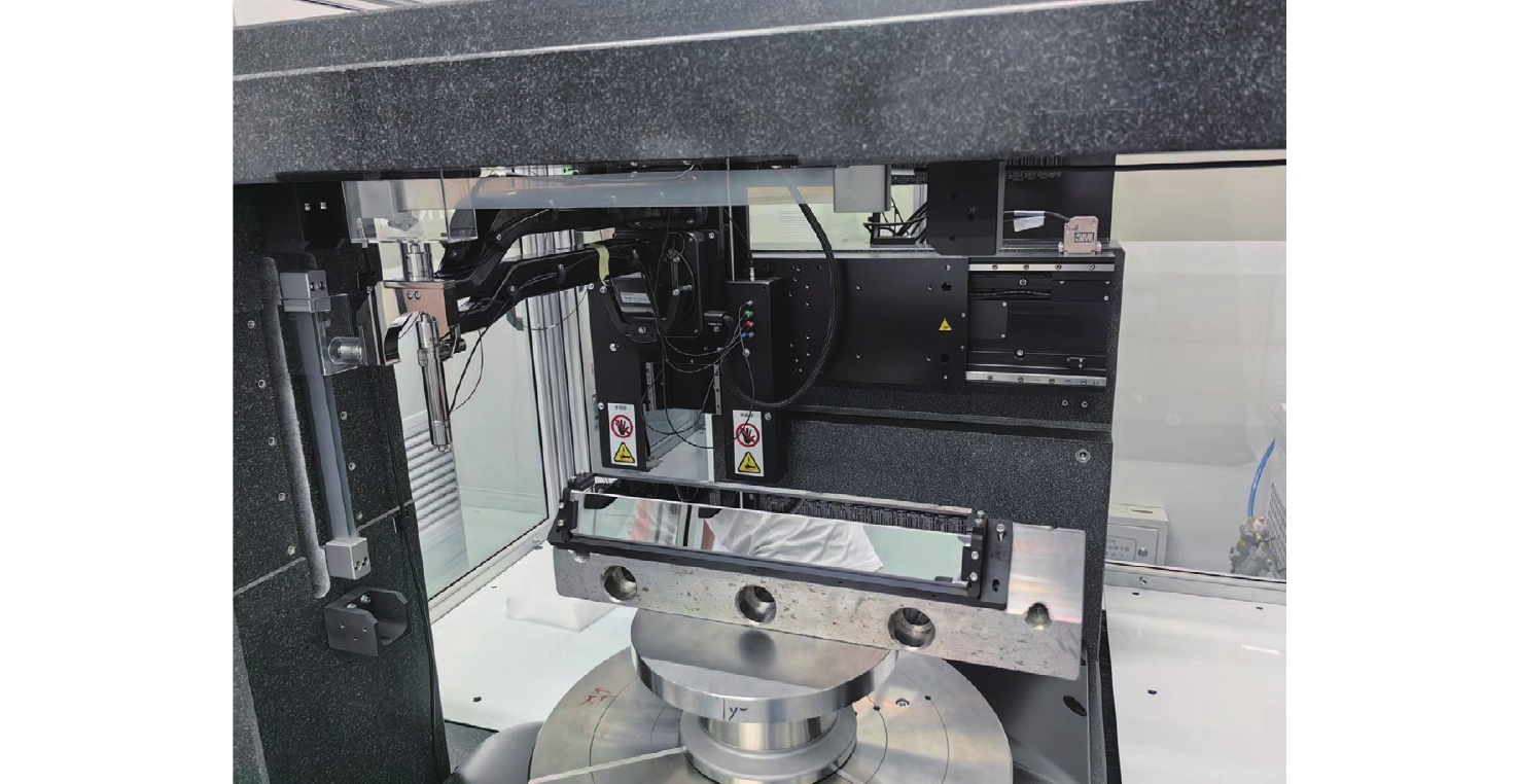To shorten the axial and radial dimensions of the 12-inch wafer detection imaging system, a solution combining the small angle prism refraction path and the ultra-short object-image distance lens is proposed. A small angle prism with shape accuracy better than 1/12