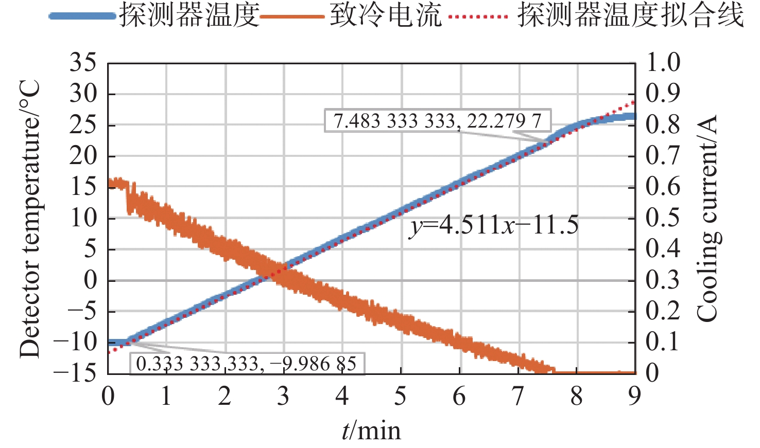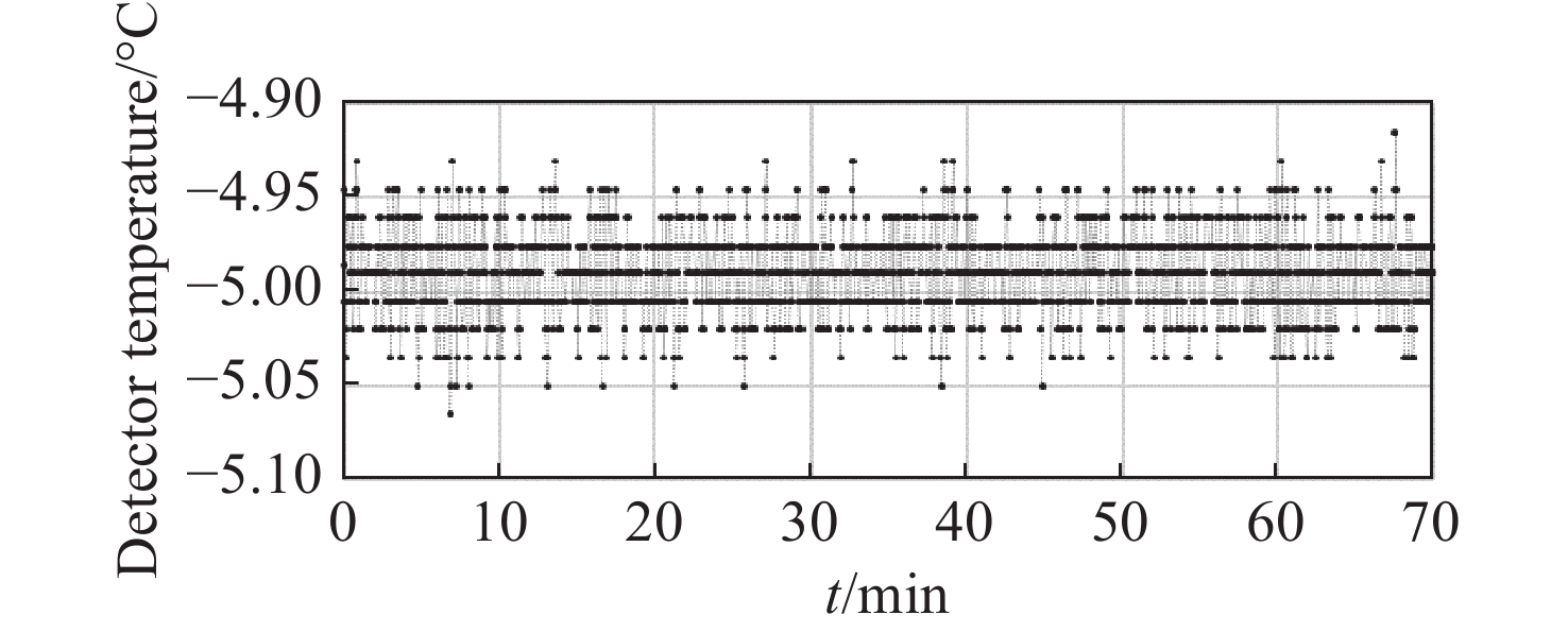 A temperature control system that employs an incremental PID algorithm based on FPGA technology has been developed to decrease detector noise and dark current while ensure the CMOS detector of the spectrometer obtain more accurate spectrum curve. Considering the current temperature and the control parameters, the appropriate control quantity is calculated to ensure the detector realize the target temperature. Controlling the temperature change rate of the detector is realized through front stage control, effectively solving the problem of overshooting. By adding the anti-integral saturation algorithm and the transition link of the target value, the function of the temperature change rate of the detector is controllable, and the problem of overshoot is solved. Multiple environmental tests conducted on the entire machine indicate that the system can control the temperature of the detector to reach any desired temperature within a specified temperature difference range of 40 °C under the ambient temperature condition in orbit. The sensor temperature has a margin of error of ±0.1 °C. Compared to the conventional analog PID control method, the proposed method offers significant advantages of high sensitivity and strong stability. At a temperature of −10 °C, the noise of the detector is substantially reduced.