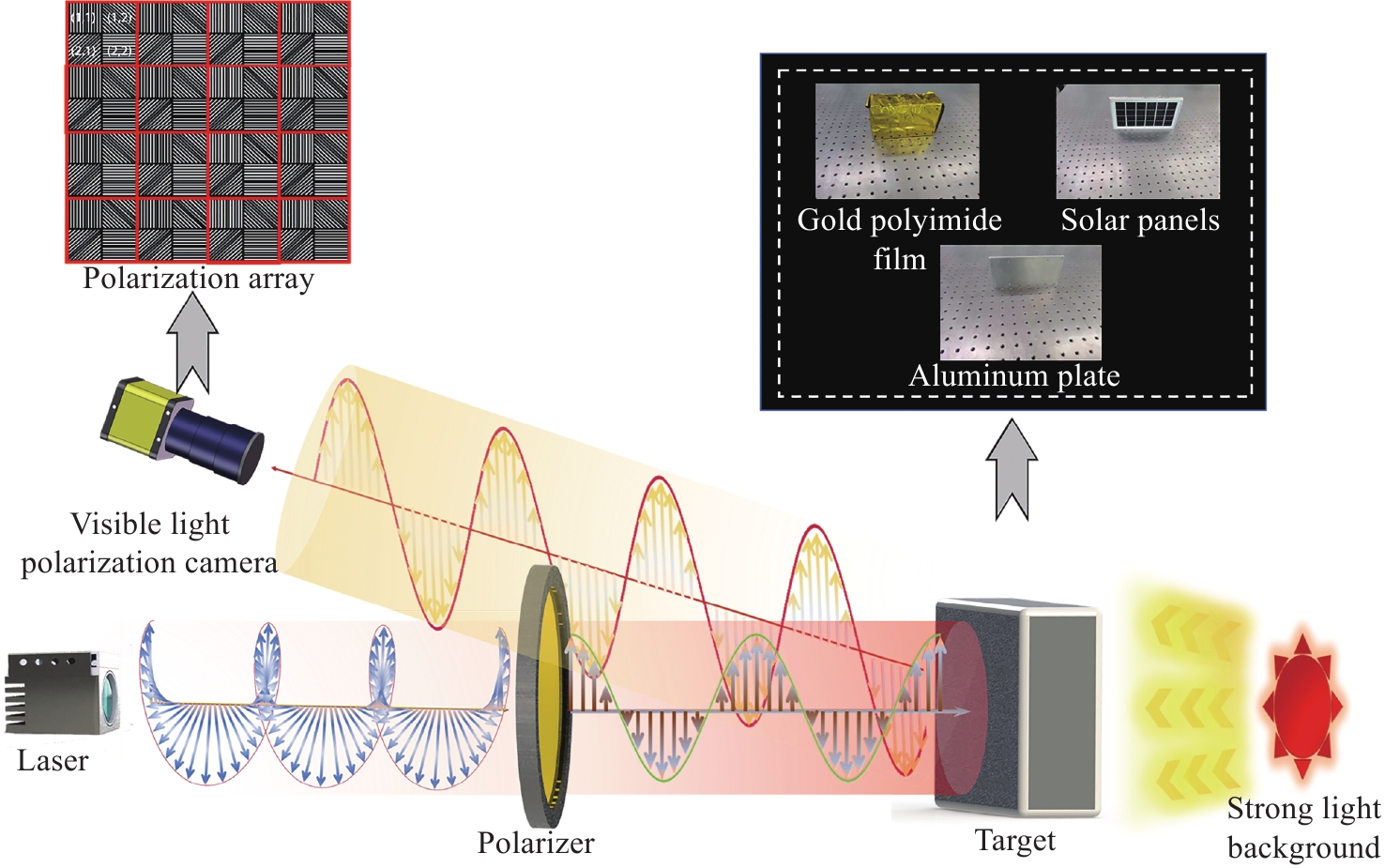 In this study, we propose an active polarization imaging method based on laser illumination to tackle the issue of low target detection contrast in strong light backgrounds, which is a challenge in conventional photoelectric detection. Through constructing a laser incident bidirectional reflection distribution model, a laser incident polarization bidirectional reflection distribution model and a target surface polarization model of laser illumination, the coupling relationship between the polarization characteristics of three typical target materials and the divergence angle of a laser beam is analyzed. Backlight observation experiments are conducted in a controlled darkroom to verify the impact of the scattering angle of the laser beam on the polarization characteristics of the target. The experimental results show an 86.11% increase in target contrast for active polarization imaging under strong light background compared to traditional passive intensity imaging. Additionally, the visible polarization characteristics of different target materials vary with different divergence angles, and the line polarization of metallic materials is higher than that of non-metallic materials. The experimental results are in good agreement with the theoretical analysis. The outdoor solar backlight observation experiment verifies the applicability of the research method in high-intensity light and long-distance settings. This study can lay a theoretical foundation for improving accurate target perception under a strong light background.