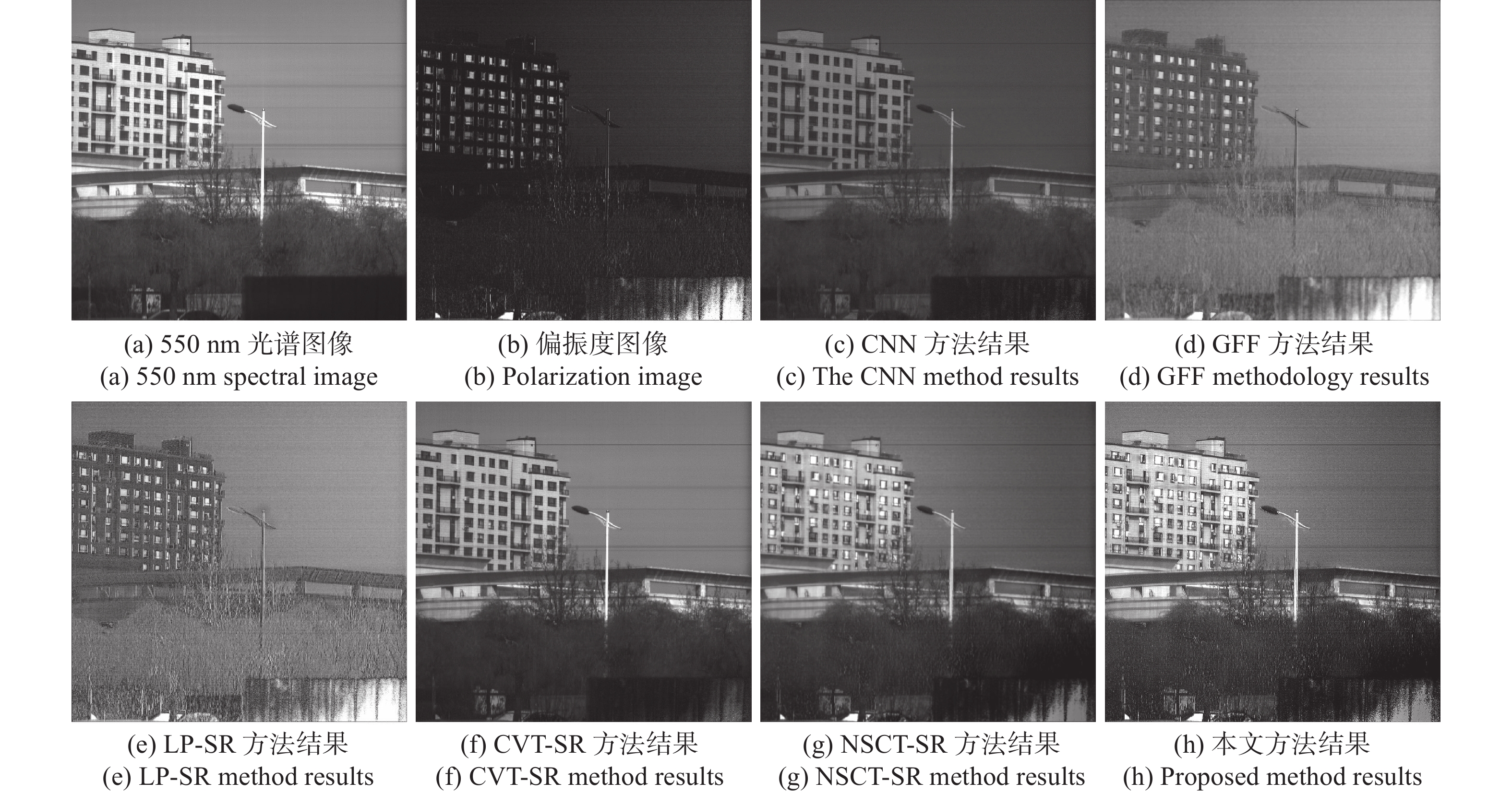 To address the issues of blurred edge details and poor contrast in multi-scale transform fused images obtained using remote sensing detection methods for mixed background features, an image fusion method that combines the sparse representation of non-downsampled contour wavelet transform and a guided filter is utilised to enhance the quality and visual appearance of the fused images. This method involves several steps: firstly, a multi-scale and multi-directional decomposition is performed on both spectral and polarimetric images using non-downsampled contour wavelet transform to isolate the feature information in each subband; secondly, the low-frequency subbands are fused using a sparse representation to minimize the loss of contrast in the fused image; additionally, the high-frequency subbands are fused through a bootstrap filter to enhance the detail information and the contours of the image; finally, the low-frequency and high-frequency fusion coefficients are inverted using non-downsampled contour wavelet inversion to generate the final fused image. Analysis results indicate that the contrast of the fused image is improved by up to 54.5% and 15.4% respectively compared to the original spectral image and the polarimetric image, making it easier to distinguish objects in shadows under a mixed background. This method is used to fuse spectral and polarimetric images captured by a polarimetric spectral imager at different wavelengths, which resulted in true-colour reproduction. These true-colour restored images demonstrate that this fusion method retains environmental information within the mixed background while distinguishing the object from the background, effectively improving the image quality of polarization spectral remote sensing detection imaging. This method can enhance the integrity and authenticity of image information in polarization spectral remote sensing detection imaging, thereby expanding its application scope in remote sensing detection of complex environments and image recognition.