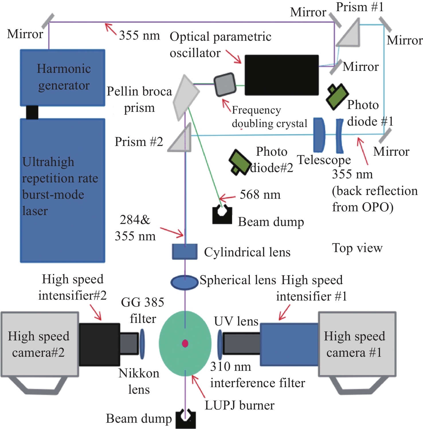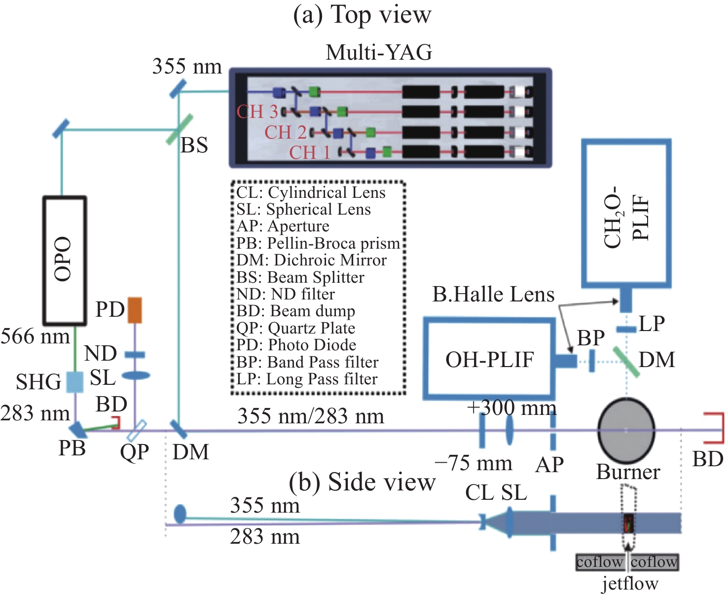 Hydroxyl (OH) is a widely existing product in the combustion reaction process. In combustion diagnosis technology, the two-dimensional spatial distribution based on hydroxyl is commonly used to characterize the structure of the flame front. Hydroxyl is an important parameter in characterizing the flame temperature, flame surface density, and heat release rate. The effective detection of hydroxyl in combustion flame is an important support for exploring the evolution of combustion dynamics and revealing the mechanism of random flame events. Planar laser-induced fluorescence (PLIF) has several advantages as an optical measurement method: high spatial and temporal resolution, non-intrusiveness, and component selection. PLIF has successfully observed the structure of various combustion flames, such as Bunsen burner flame, turbulent flame, swirl flame, and supersonic flame, which provides an important reference for establishing combustion models. This paper starts with the basic principle of PLIF detection, followed by the development history and research status of PLIF technology in the field of combustion diagnosis. Then, it introduces the PLIF ultraviolet light source technology based on dye laser, optical parametric oscillation, and Ti:sapphire tripling-frequency, and discusses the characteristics of different technical routes. Finally, it prospects the development of UV laser technology for OH-PLIF.