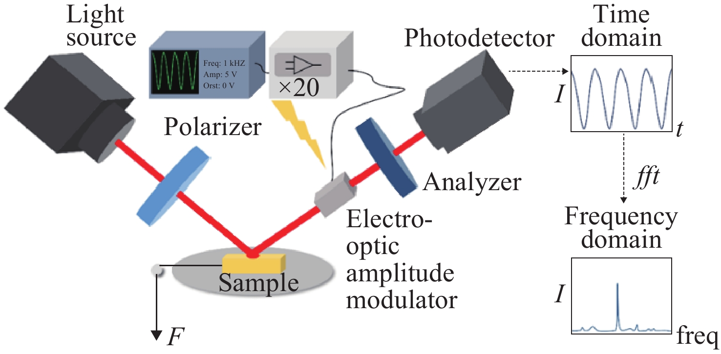 To achieve high-precision residual stress detection in key components in precision manufacturing, an electro-optic modulated ellipsometric stress sensing system has been established. This study focused on the ellipsometric signal response of common 304 stainless-steel materials in engineering under uniaxial tensile stress conditions. Firstly, based on the fundamental principles of reflection ellipsometry, the relationship between the ellipsometric signal and the ordinary and extraordinary refractive indices was established for different optical axis directions. Secondly, the working point of ellipsometric stress sensing was optimized for stainless steel materials. By comparing the ellipsometric signals at the extinction point and the non-zero linear working point, it was demonstrated that the non-zero linear condition is suitable for stress signal sensing. Finally, the stress-induced ellipsometric signals were measured under different optical axis directions. The experimental results indicate that for 304 stainless steel, the system's minimum stress detection limit is 7.84 kPa, and the stress detection accuracy of the system is better than 7.84 kPa. This system can be utilized for high-precision stress detection requirements in metal workpieces in precision manufacturing.