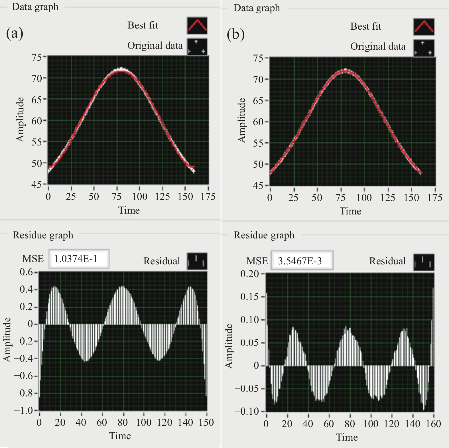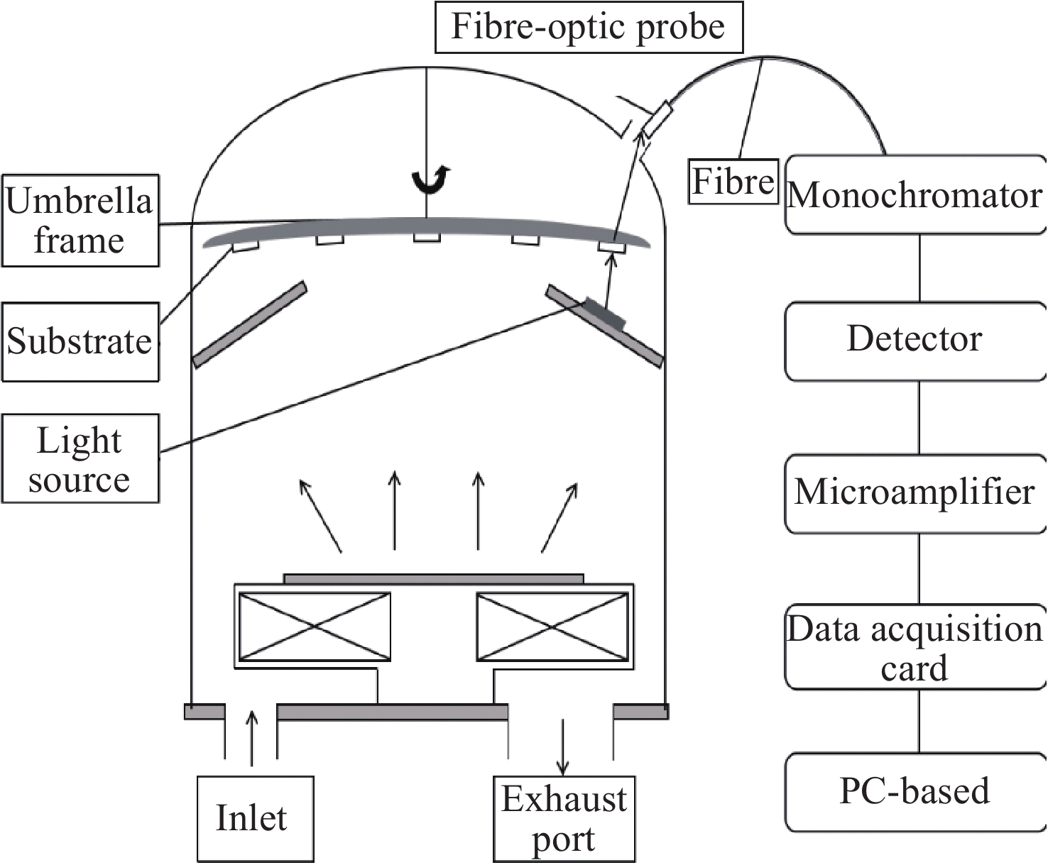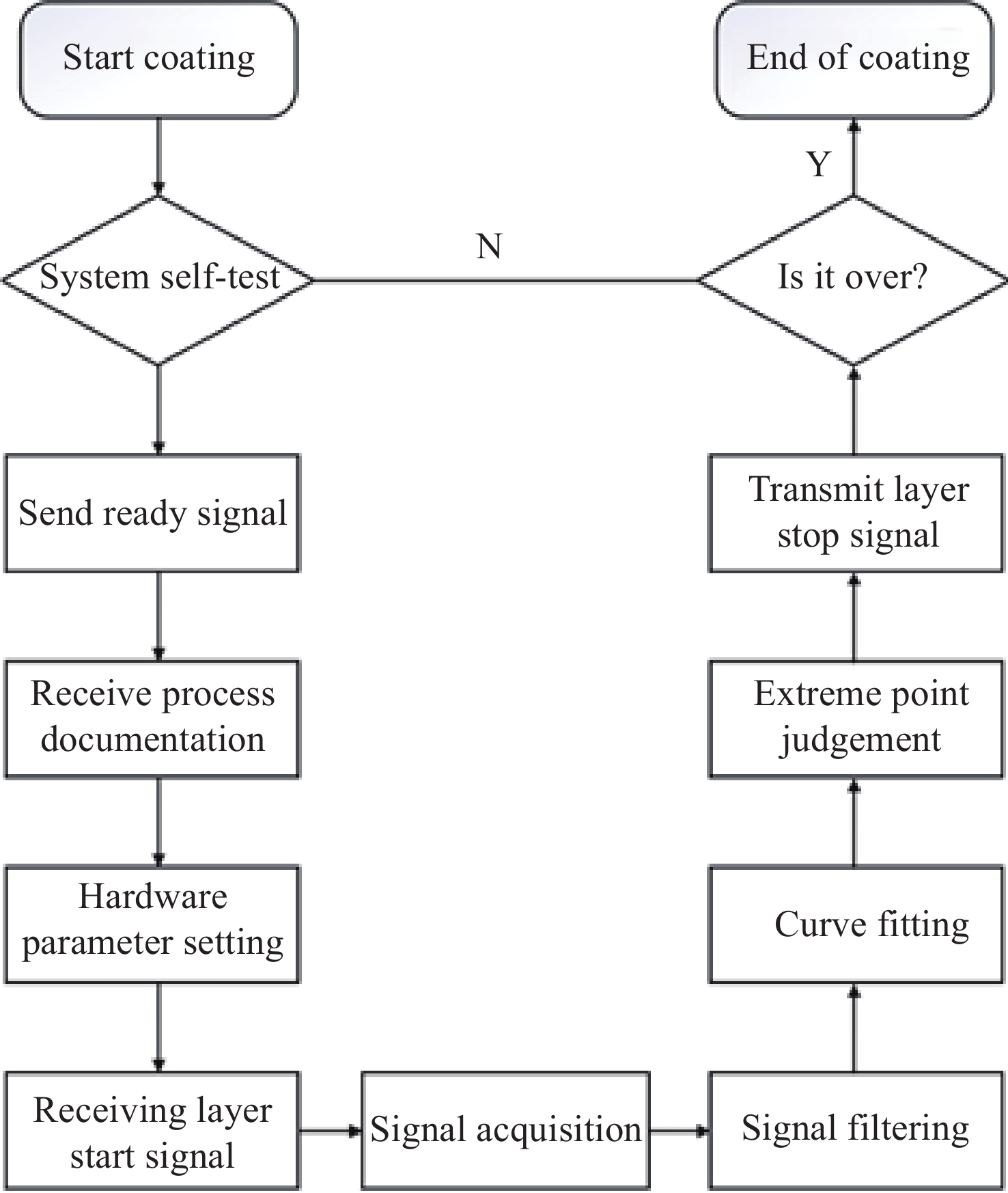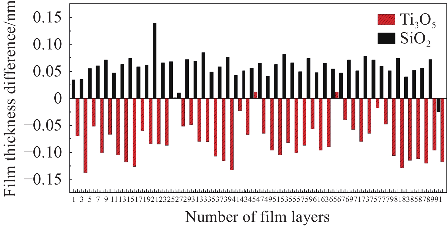 To address issues related to the accurate control of infrared band film thickness and precise wavelength positioning, we employ the LabVIEW programming language to develop a dynamic monitoring and compensation technology for optical film thickness, based on an optical film thickness monitoring system. Based on the principles of light interference and optical thin film design, a mathematical model is constructed using the photoelectric polarimetric method. We focus on resolving stopping errors and filtering noise at extremum points, thereby accurately restoring the real-time monitoring data of light intensity. The system achieves real-time and synchronous fitting of the film’s transmittance curve, calculates and fits the stopping point corresponding to the extremum of the film thickness. To validate the reliability and stability of the optical control system, a