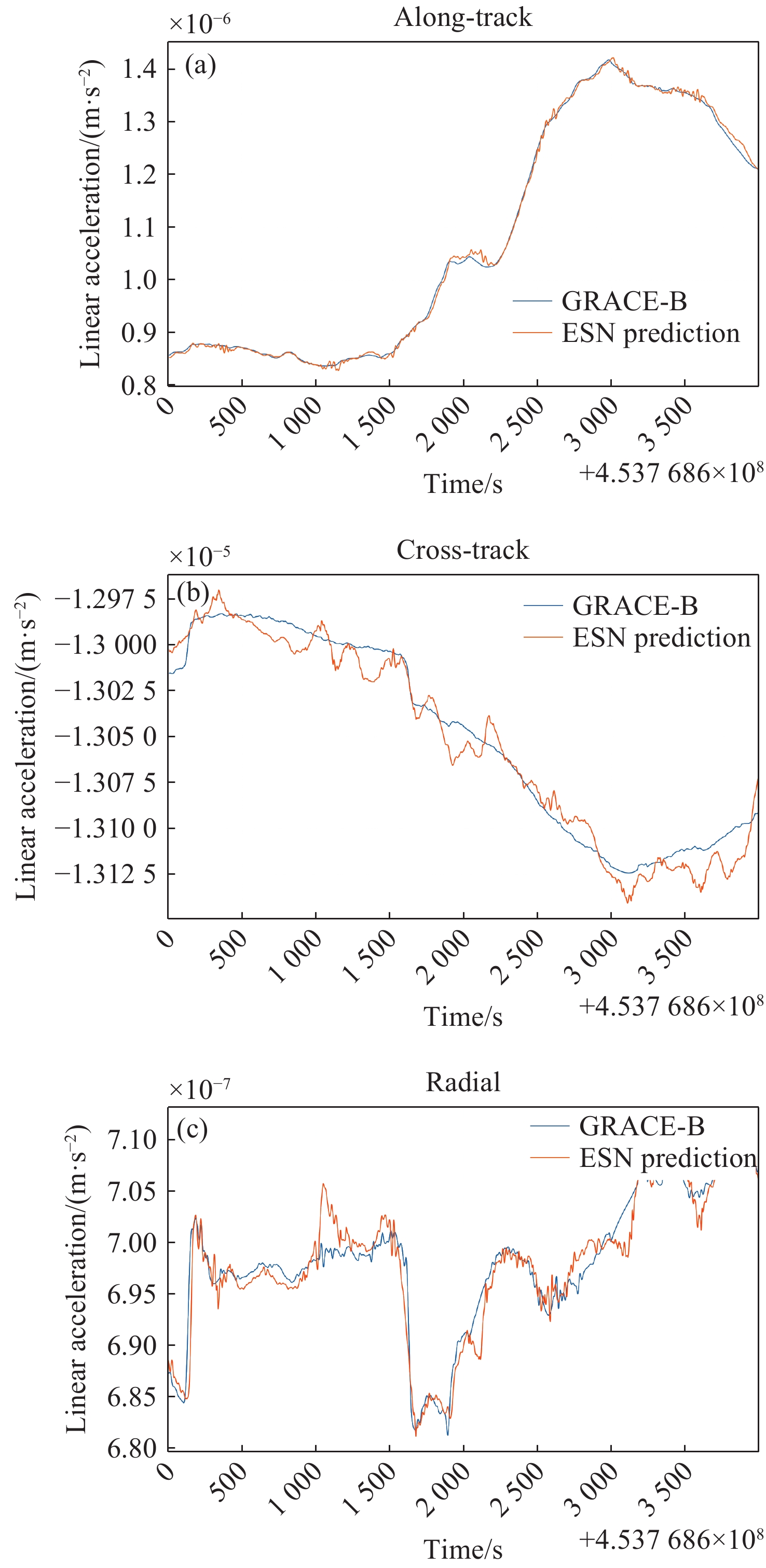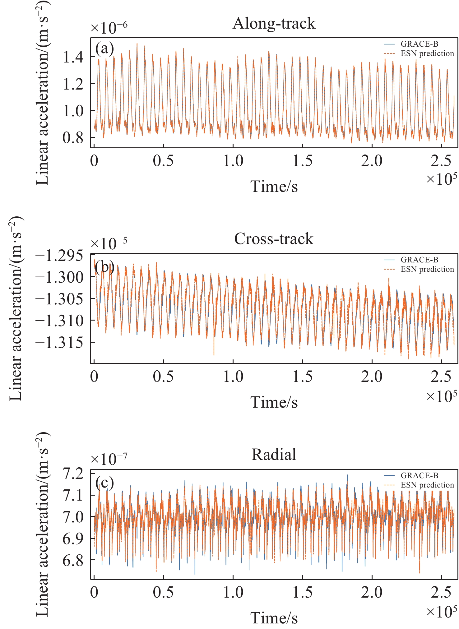 As a follow-on mission to the GRACE low-low satellite-to-satellite tracking gravity mission, one of the twin satellites of laser ranging interferometer gravity mission GRACE Follow-On experienced an anomaly in its accelerometer payload after one month of operation. This anomaly resulted in the loss of scientific measurement data, a situation similar to the final phase of the GRACE. Therefore, research on accelerometer data recovery is important to achieve the detection objectives of both GRACE and GRACE Follow-On. This paper proposes a novel method for accelerometer data recovery and reconstruction based on the Echo State Network in machine learning. By constructing a mapping relationship of accelerometer data between the twin satellites using the Echo State Network and improving the network performance through Bayesian optimization, this method can achieve high-precision and high-efficiency reconstruction of missing accelerometer data. Through experimental comparison with measured data, in the frequency band of gravity field detection, the prediction results in the along-track and radial directions have been shown to reach the level of