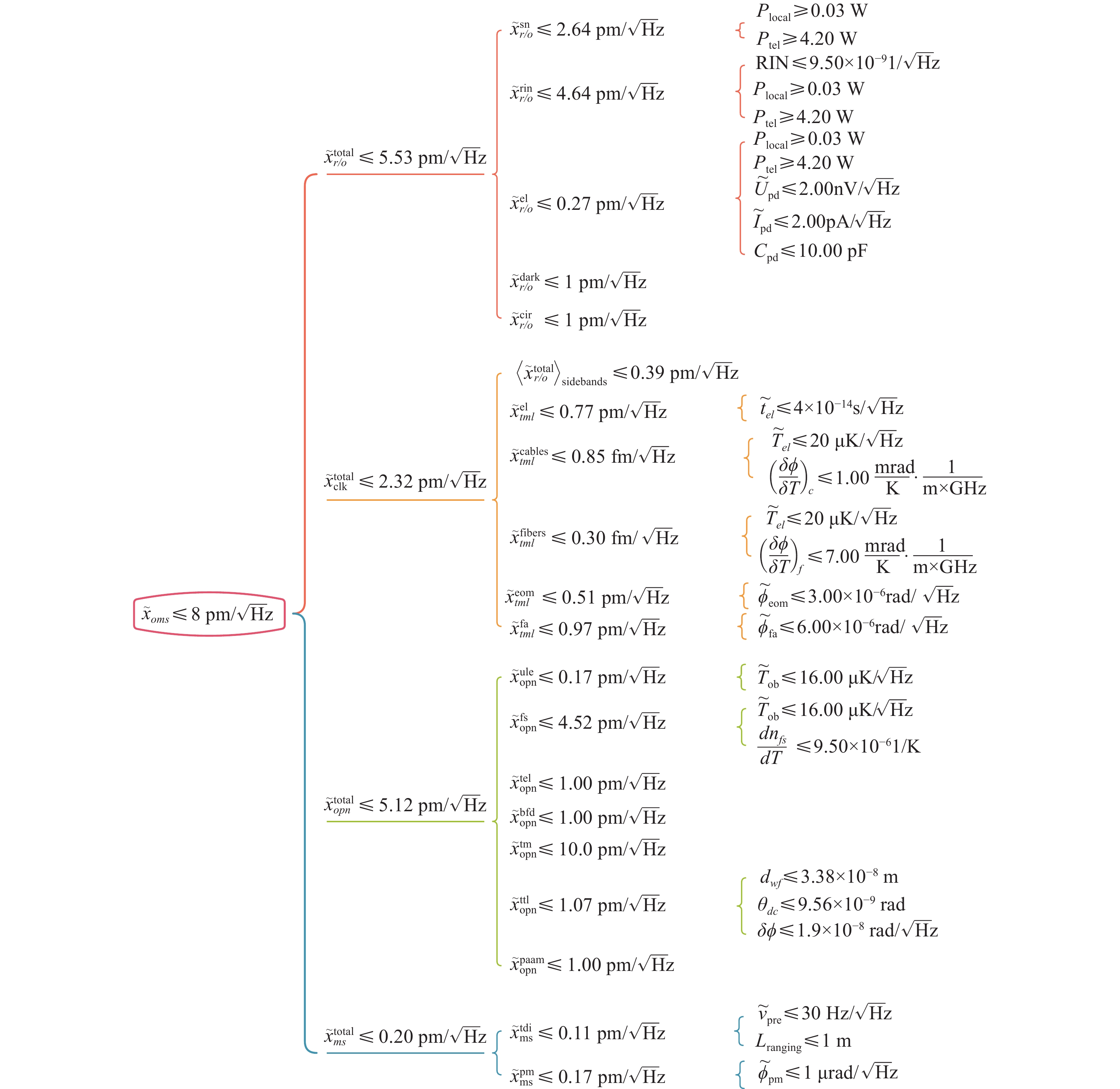 To meet the picometer-level ranging accuracy requirements for space-based gravitational wave detection, this paper proposes an optimization method for the inter-spacecraft optical metrology noise link metrics. The method optimizes the design parameter to ensure the inter-spacecraft ranging accuracy while improving the technical feasibility of the spacecraft design. Firstly, the design parameters and objective functions of the optimization problem are clearly defined, and Sobol sensitivity analysis is used to effectively identify the key parameters. Subsequently, the optimization problem is solved using the Non-dominated Sorting Genetic Algorithm II (NSGA-II), from which the optimal solution is selected from the Pareto front based on the requirements. On this basis, the design metrics for each parameter are determined, and an initial metric tree is constructed. Simulation experiments verify the feasibility of the method. The results show that by optimizing the noise link metrics in accordance with the proposed approach, it is possible to achieve an optical metrology noise level of 8 pm/