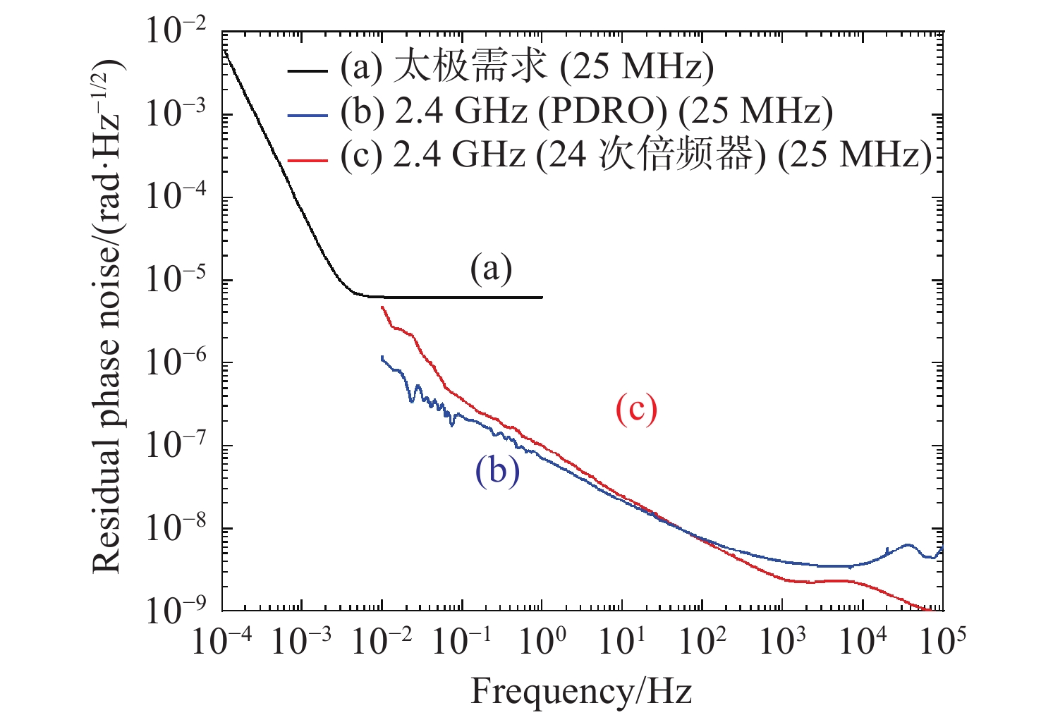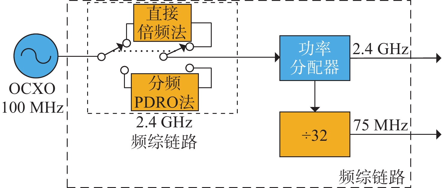 A space laser interferometric gravitational wave observatory requires spaceborne clocks with ultralow phase noise in the millihertz frequency band. Such noise can be suppressed using a sideband multiplication transfer scheme and pilot tone techniques. To meet the requirements of the clock noise suppression technique, ultralow residual phase noise synthesizers are required to generate the microwave (2.4 GHz) for electro-optic modulator modulation and the pilot tone signal (75 MHz). To this end, two different structures of microwave chains have been designed, implemented and compared. The application of low phase noise phase-locked dielectric resonator oscillators (PDROs) and frequency division techniques enabled the development of a frequency synthesis chain with ultralow residual phase noise. The residual phase noise of the 75 MHz pilot signal is measured to be