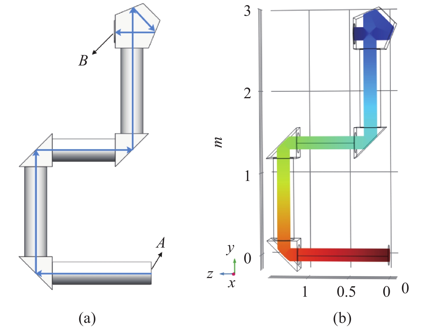 During the propagation of high-power lasers within internal channels, the laser beam heats the propagation medium, causing the thermal blooming effect that degrades the beam quality at the output. The intricate configuration of the optical path within the internal channel necessitates complex and time-consuming efforts to assess the impact of thermal blooming effect on the optical path. To meet the engineering need for rapid evaluation of thermal blooming effect in optical paths, this study proposed a rapid simulation method for the thermal blooming effect in internal optical paths based on the finite element method. This method discretized the fluid region into infinitesimal elements and employed finite element method for flow field analysis. A simplified analytical model of the flow field region in complex internal channels was established, and regions with similar thermal blooming effect were divided within this model. Based on the calculated optical path differences within these regions, numerical simulations of phase distortion caused by thermal blooming were conducted. The calculated result were compared with those obtained using the existing methods. The findings reveal that for complex optical paths, the discrepancy between the two approaches is less than 3.6%, with similar phase distortion patterns observed. For L-type units, this method and the existing methods identify the same primary factors influencing aberrations and exhibit consistent trends in their variation. This method was used to analyze the impact of thermal blooming effect in a straight channel under different gravity directions. The results show that phase distortion varies with changes in the direction of gravity, and the magnitude of the phase difference is strongly correlated with the component of gravity perpendicular to the optical axis. Compared to the existing methods, this approach offers greater flexibility, obviates the need for complex custom analysis programming. The analytical results of this method enable a rapid assessment of the thermal blooming effect in optical paths within the internal channel. This is especially useful during the engineering design. These results also provide crucial references for developing strategies to suppress thermal blooming effect.